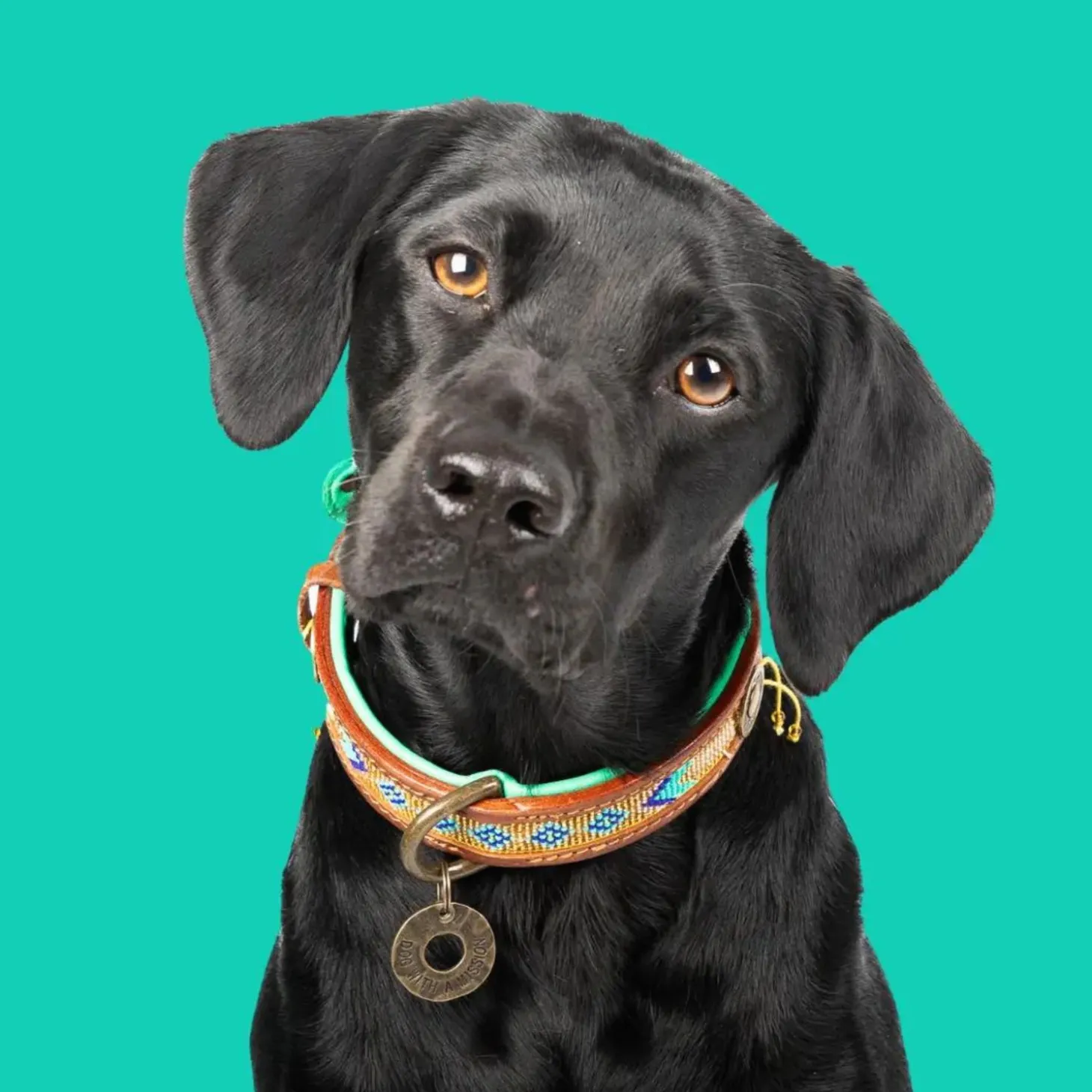 Wanneer je op pad gaat met je hond, wil je er natuurlijk wel flitsend uitzien. DWAM heeft een assortiment met prachtige riemen en halsbanden waarmee je hond er altijd stijlvol bij loopt. De Indi Moon van Dog With A Mission is een handgemaakte, oersterke halsband voor je viervoeter. De Indi Moon is gemaakt van leer met in combinatie met prachtige goud/turquoise kralen. De halsband wordt afgemaakt met een bedeltje.