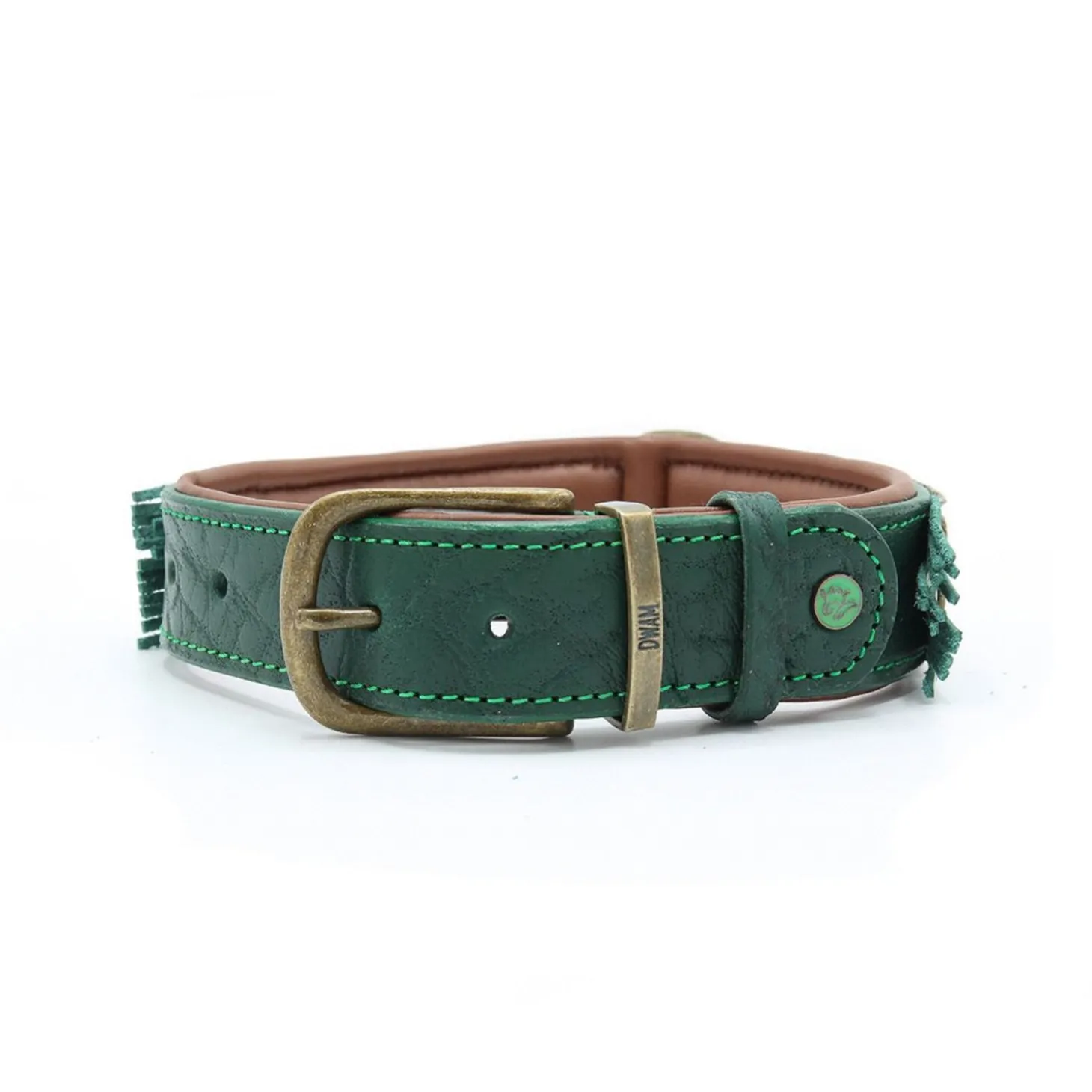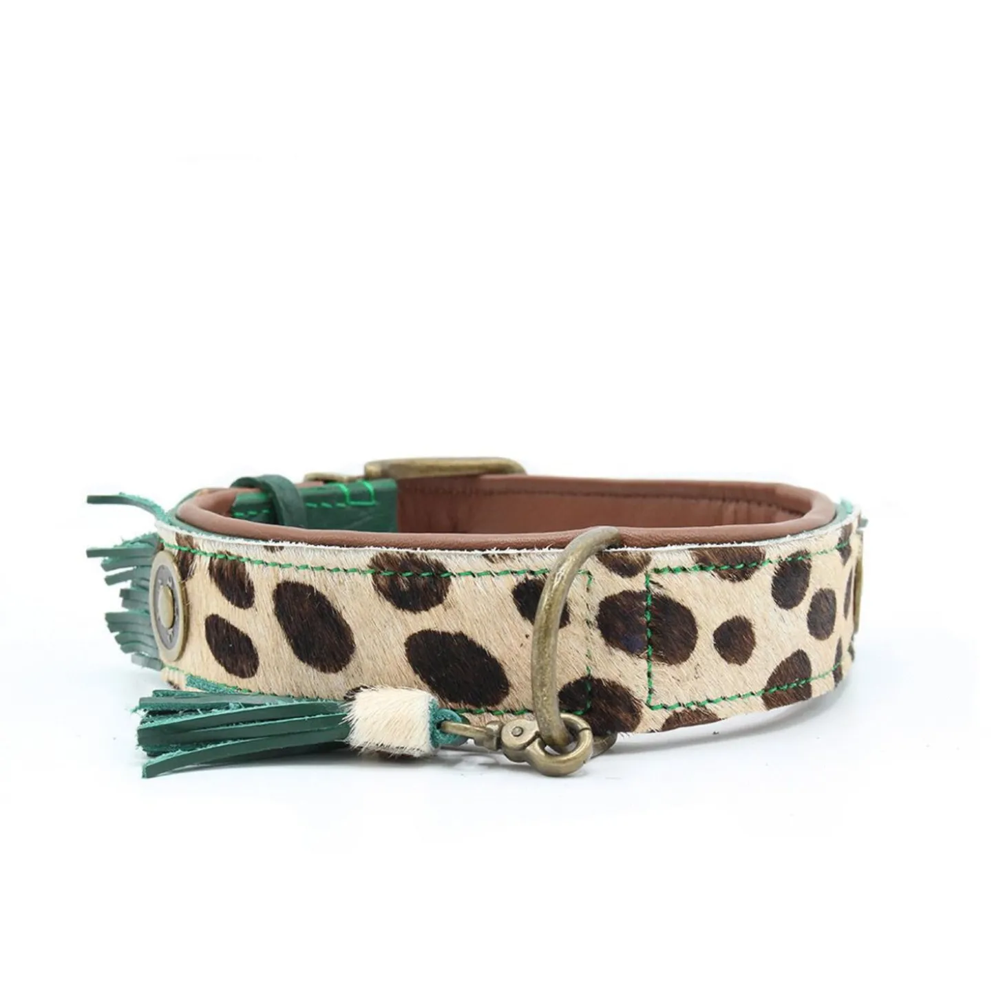 Wanneer je op pad gaat met je hond, wil je er natuurlijk wel flitsend uitzien. DWAM heeft een assortiment met prachtige riemen en halsbanden waarmee je hond er altijd stijlvol bij loopt. De Ivy van Dog With A Mission is een handgemaakte, oersterke halsband voor je viervoeter. De Ivy is gemaakt van leer in combinatie met bedrukt geitenhaar (panterprint). De halsband wordt afgemaakt met een bedeltje.