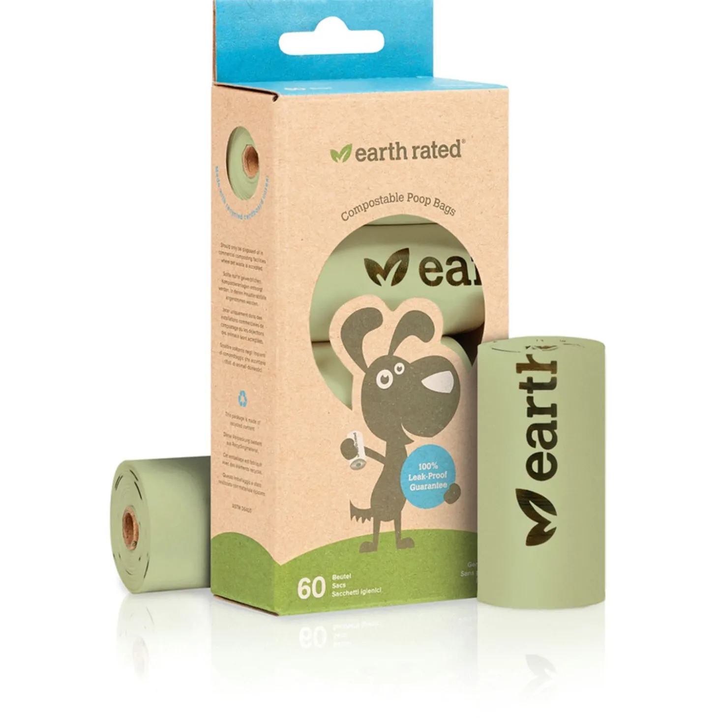 De Earth Rated zakjes zijn lekvrij, van hoge kwaliteit en zijn zeer betaalbaar. Ook aan het milieu is gedacht, de kartonnen binnenrollen en de verpakking zijn gemaakt van gerecycled materiaal. De rollen passen in standaard riemdispensers en uiteraard ook in de los verkrijgbare Earth Rated Houder.
