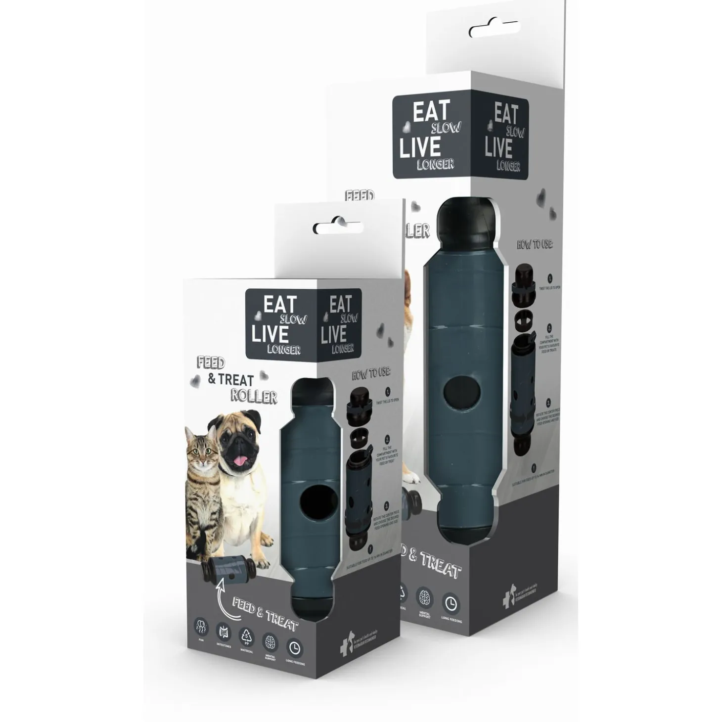 De Eat Slow Live Longer Feed & Treat is grijs van kleur en is verkrijgbaar in twee maten: