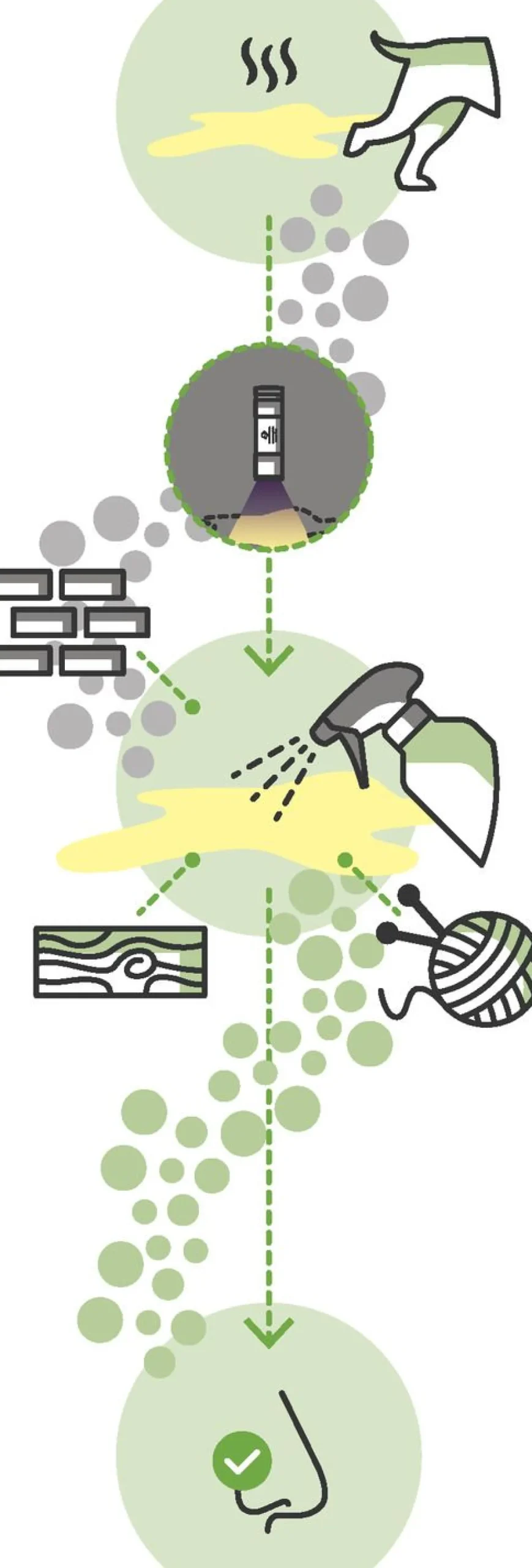 | Aanbeveling | Zorg ervoor dat de UF2000 altijd voldoende in contact komt met de achtergebleven urine resten door het goed in te laten trekken en in ieder geval voldoende UF2000 aan te brengen.Spray rechtstreeks op de urineplek en laat het UF2000 enige tijd zijn werk doen. Niet schrobben of inwrijven.De te behandelen urinevlek dient in zijn geheel én lang genoeg met de UF2000 in contact te komen om effectief de urinegeur te kunnen neutraliseren. Laat de behandelde plaats vervolgens natuurlijk opdrogen |