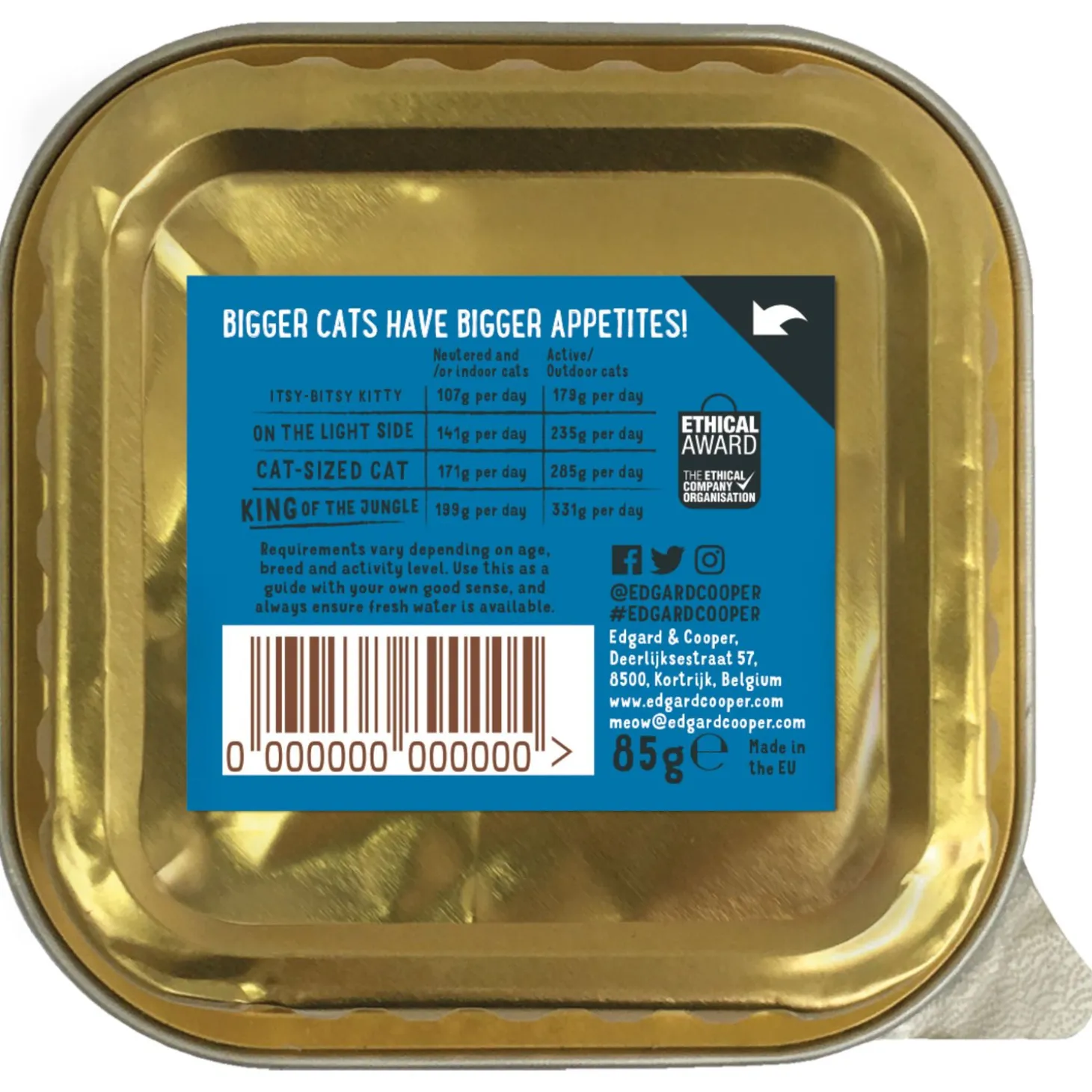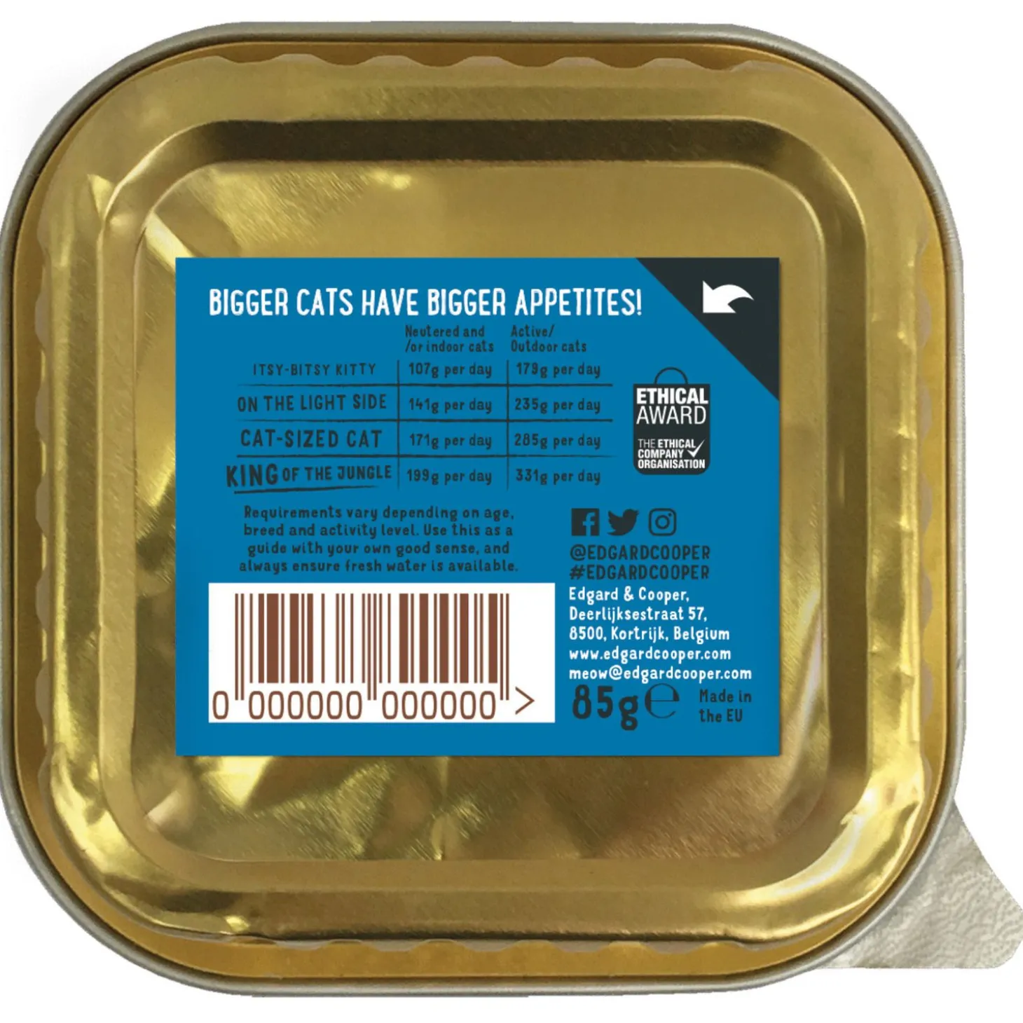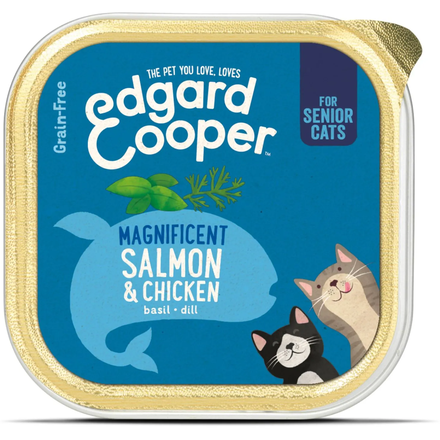 Omdat katten carnivoren zijn, en katten gezond oud moeten worden, bevatten alle voedingen voor oudere katten van Edgard & Cooper minstens 60% eiwitrijk vlees of vis. Zalm bevat veel omega 3 voor gezonde hersenen en een zachte vacht. De toegevoegde veenbessen dragen bij aan een gezonde blaas- en nierfunctie. Het vlees wordt gecombineerd met een uitgebalanceerde mix van kruiden, bessen en botanicals, zoals in dit geval basilicum, dille en veenbessen. Als laatste zijn lijnzaad en taurine toegevoegd voor een scherp zicht en een goed hart. De voeding is ook geschikt voor gecastreerde of gesteriliseerde katten. Een erg smakelijke voeding waar je kat zeker van zal genieten. Tevens bevat de natvoeding geen vlees- of vismeel en geen bewerkte of gedroogde ingrediënten.
