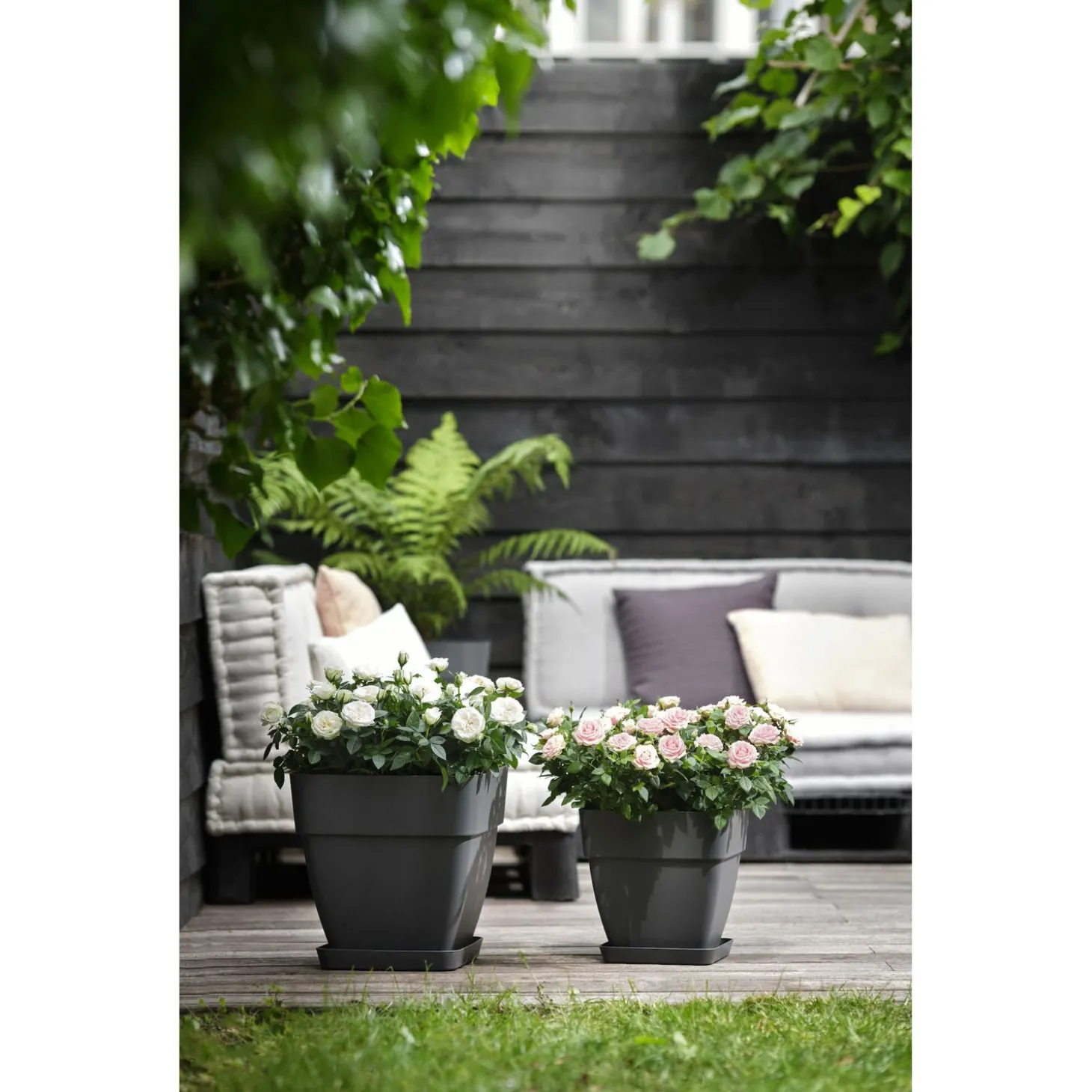Bloempotten en plantenbakken moeten natuurlijk wel passen bij je interieur, de Vibia Campana Vierkant van elho is een stijlvolle bloempot die zal zorgen voor eindeloos veel tuininspiratie. De pot is verkrijgbaar in verschillende kleuren en maten zodat je je tuin, balkon of perkje exact naar wens kunt inrichten. De strakke vormen in de pot zijn goed te combineren met grote, bloeiende planten en exotische planten zoals bamboe. Daarnaast zorgt de stoere, grove textuur voor een uniek uiterlijk.