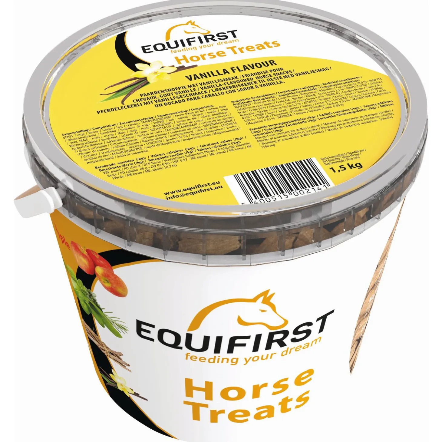 Equifirst Horse Treats zijn rijk aan vezels, wat helpt om de spijsvertering te ondersteunen. De vanille in Equifirst Horse Treats is een bron van vitamines en mineralen.