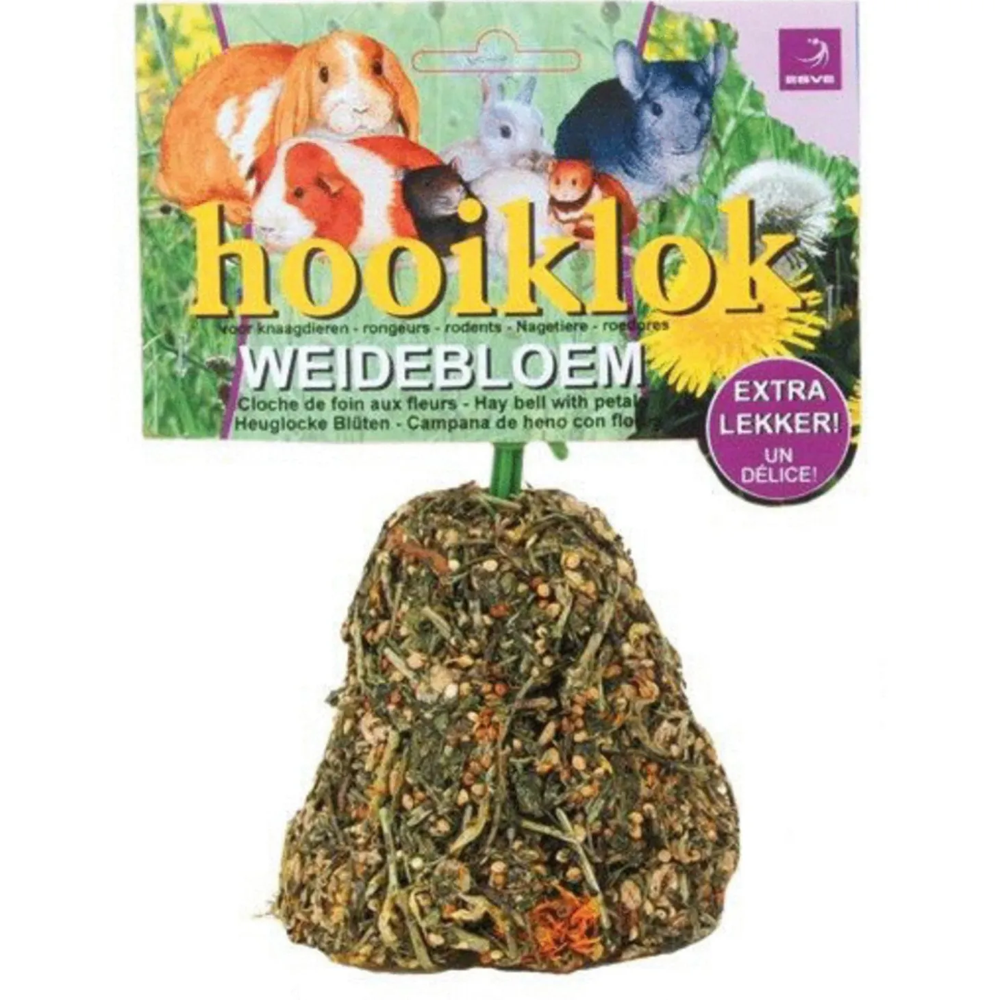 Een leuke decoratieve klok gemaakt van hooi. Speciaal voor konijnen en knaagdieren om lekker aan te knagen. De klok is geheel gemaakt van natuurlijk materiaal. Vordert de spijsvertering en zorgt voor een goede weerstand. Bevat belangrijke vitaminen en mineralen. Verkrijgbaar in de twee smaken wortel en weidebloem.