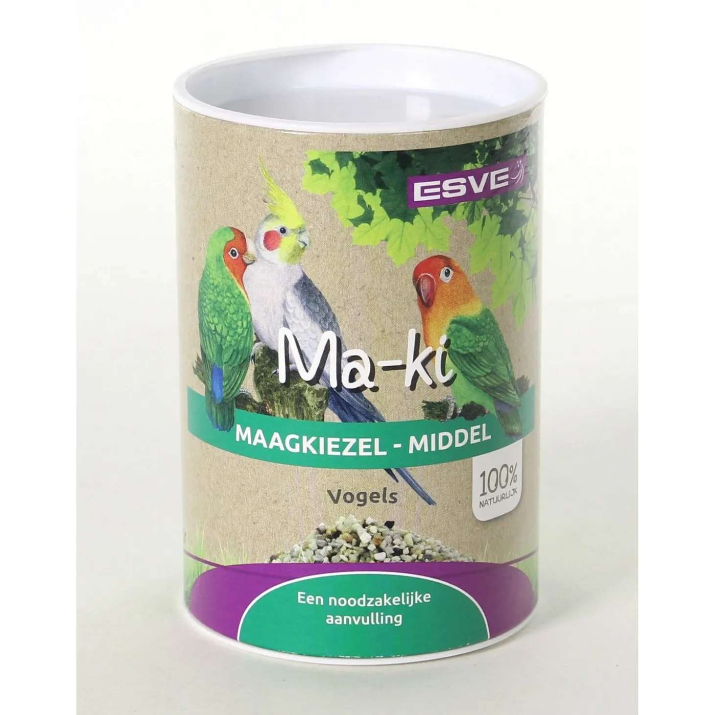 MA-KI maagkiezel middel van ESVE is een noodzakelijke aanvulling voor jouw vogel. De kiezels variëren van 1 – 6 mm en zijn geschikt voor grote parkieten. Maagkiezel helpt de spiermaag met het vermalen van het opgenomen voedsel. Wanneer vogels maagkiezel eten, krijgen ze een betere spijsvertering en komen er voedingssappen vrij. Deze voedingssappen bevorderen de conditie, weerstand en de rui!