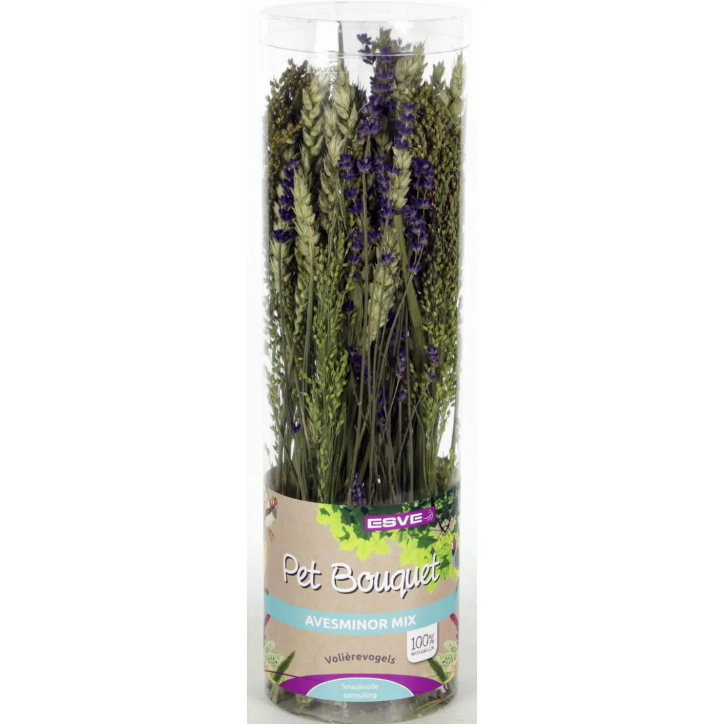 Deze heerlijke Pet Bouquet koker Aves minor van ESVE is een mix van tarwe, kattenstaart en amarant. Deze smaakvolle mix stimuleert het natuurlijke gedrag en is ideaal voor volière vogels.
