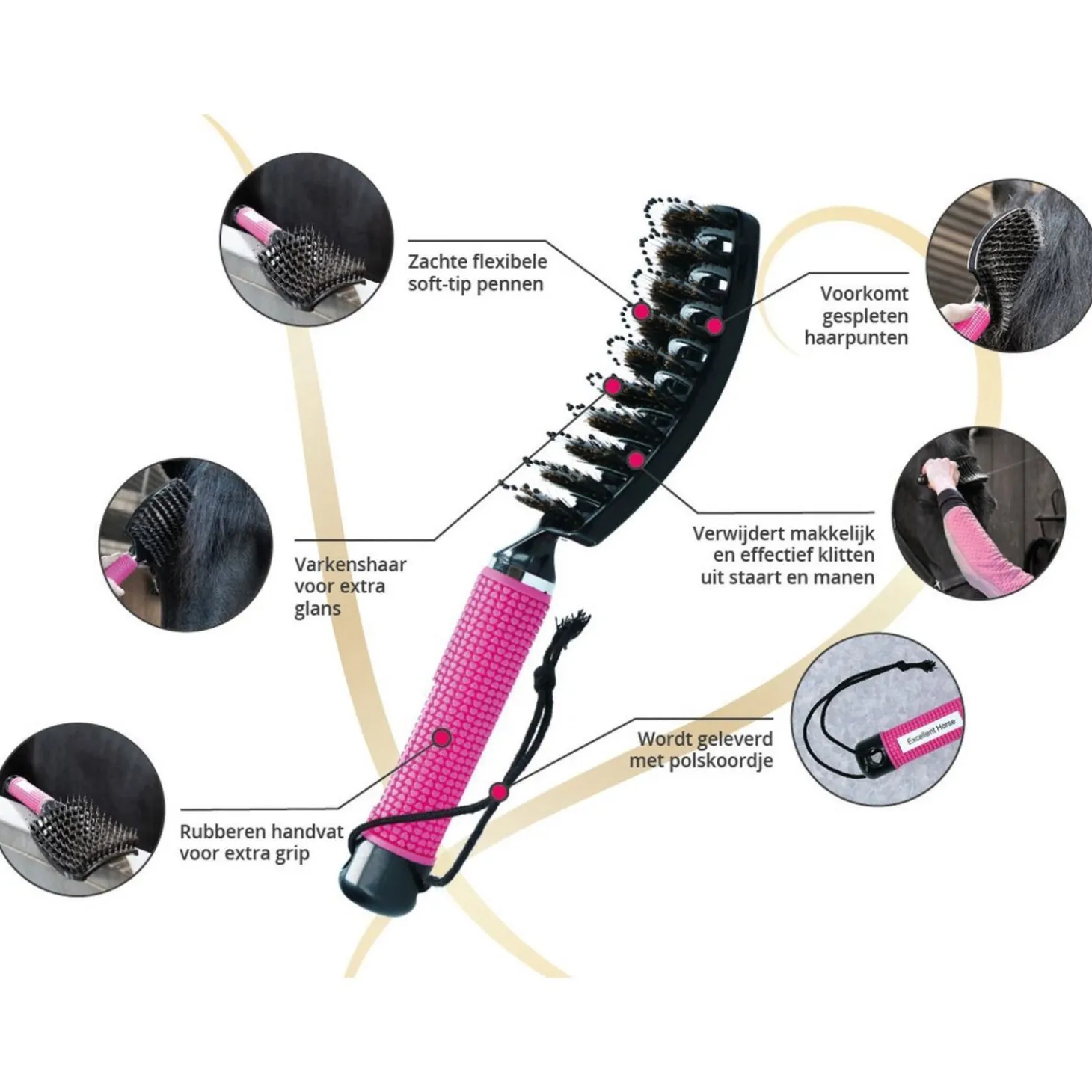- Varkenshaar en flexibele pinnen laten het haar glanzen