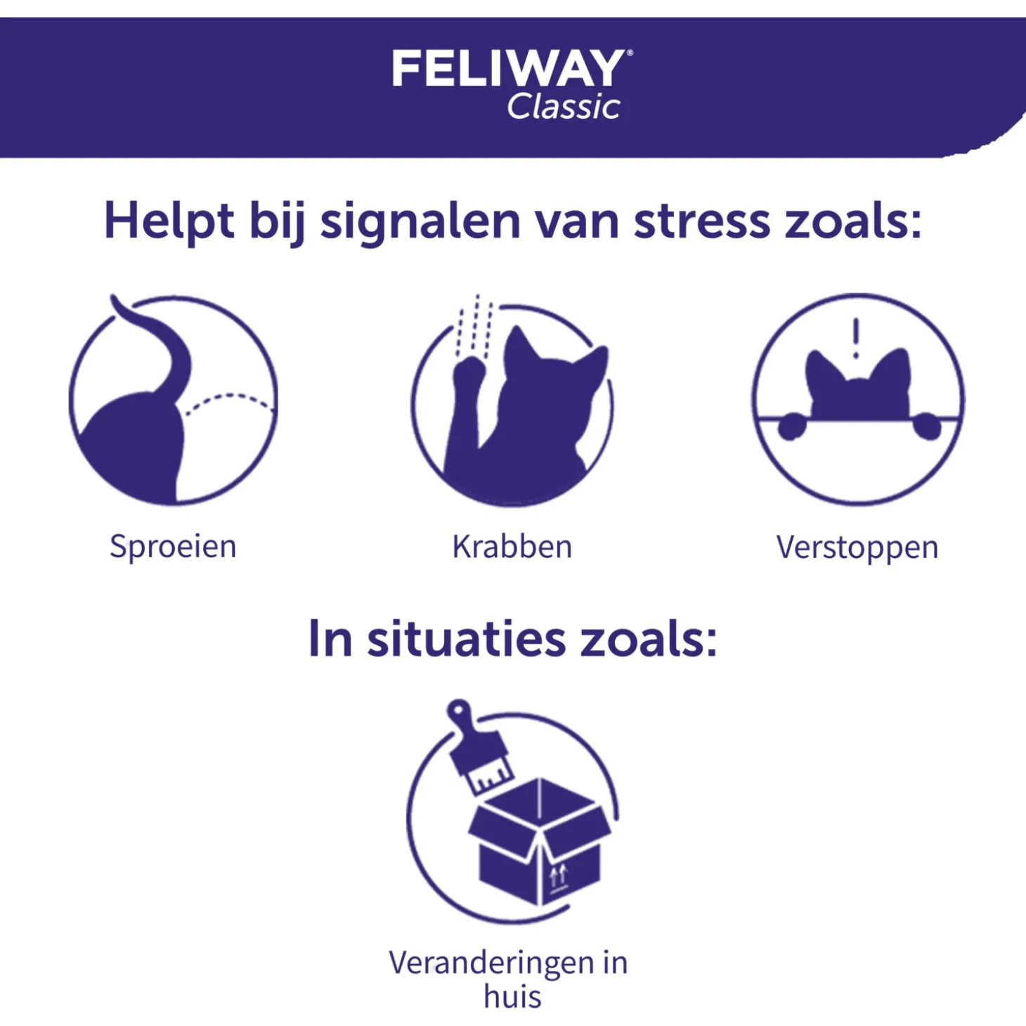 Is jouw kat gestrest door veranderingen in huis of andere stressoren? Met de Feliway Classic Navulling creëer je een vertrouwde omgeving waar je kat zich veilig voelt. Deze navulling, die maandelijks vervangen moet worden, imiteert de natuurlijke feromonen van een kat en helpt bij het verminderen van stress en ongewenst gedrag.