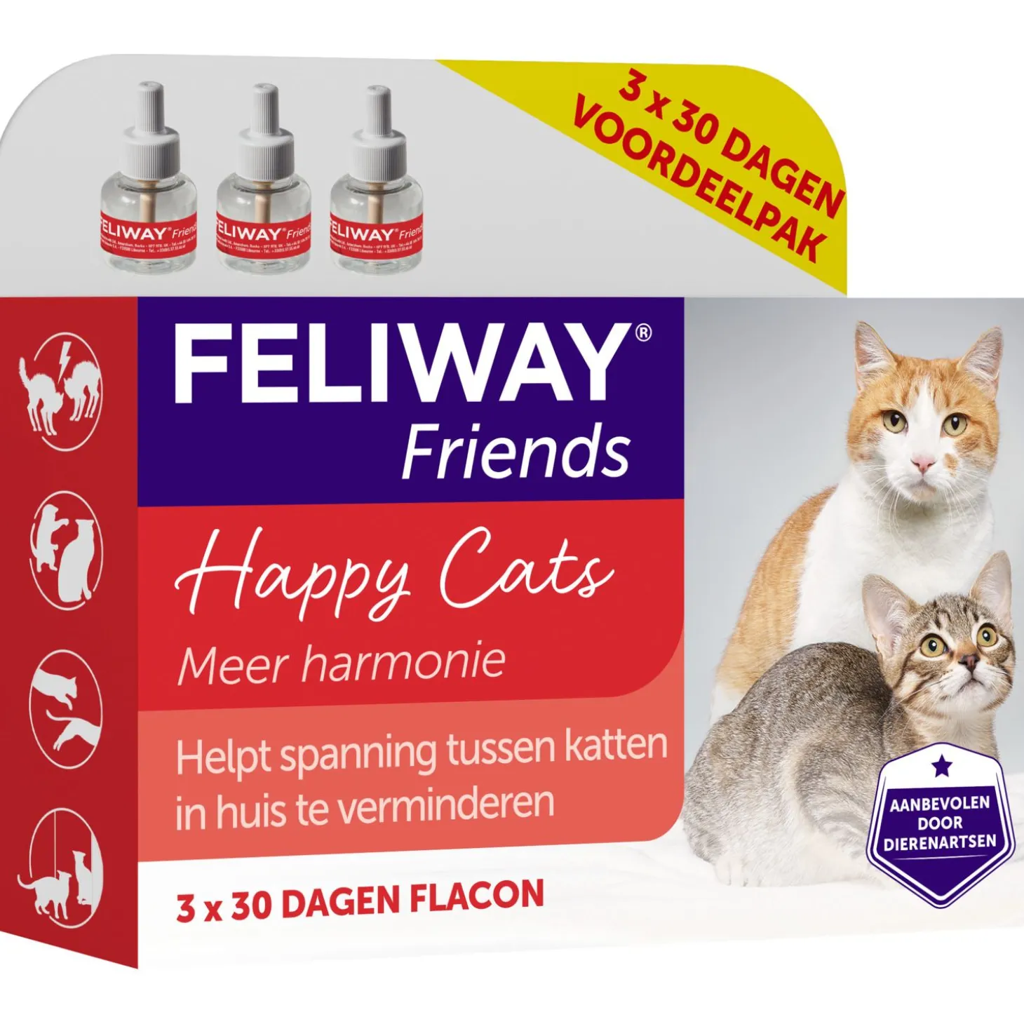 Feliway Friends Navulling is verkrijgbaar in een verpakking met 1 flacon of met 3 flacons. Je moet in het bezit zijn van de Feliway Friends verdamper om dit product te kunnen gebruiken