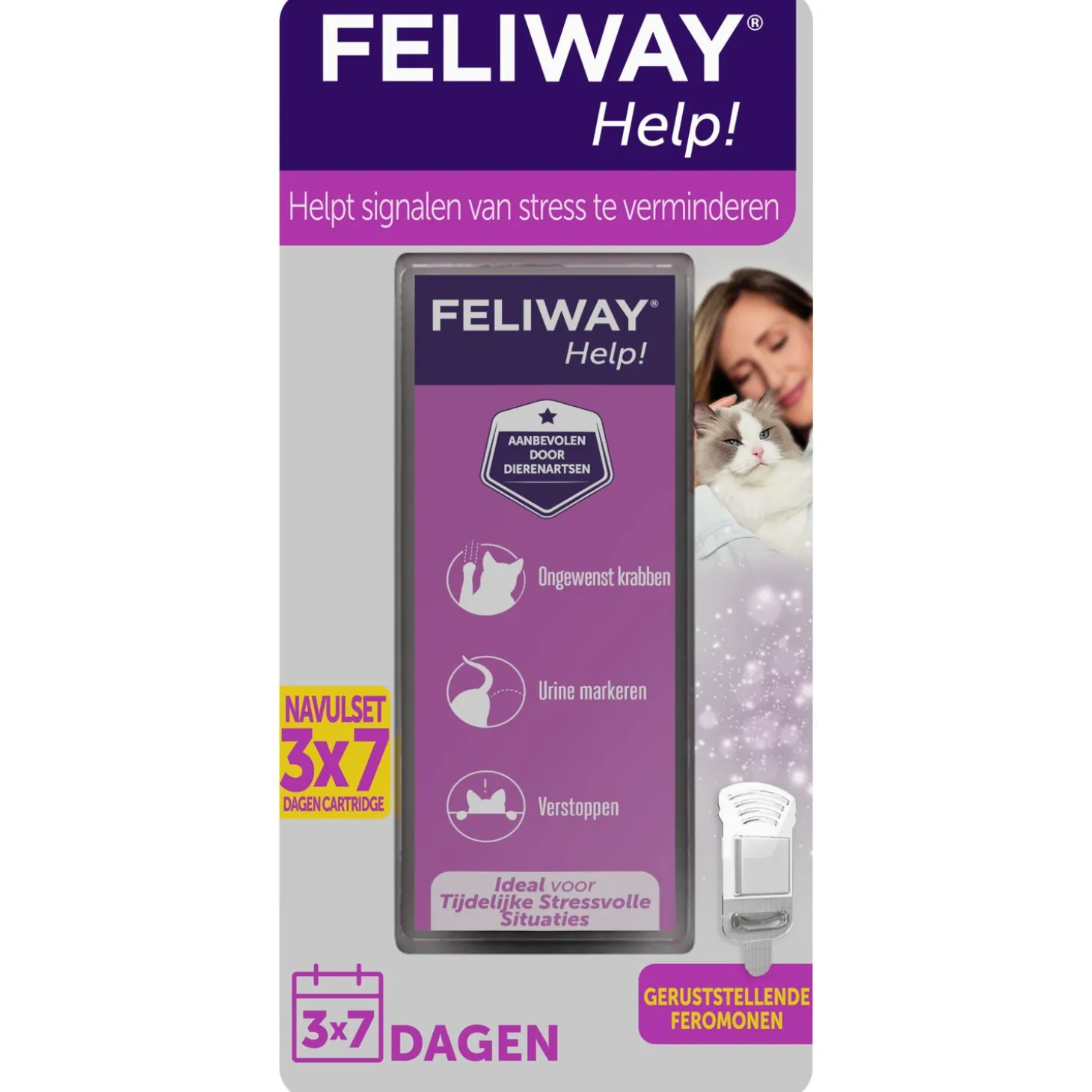 Feliway Help! helpt gedurende 7 dagen signalen van stress te verminderen. Het werkt vooral goed bij stressmomenten die van korte duur zijn, denk hierbij aan: