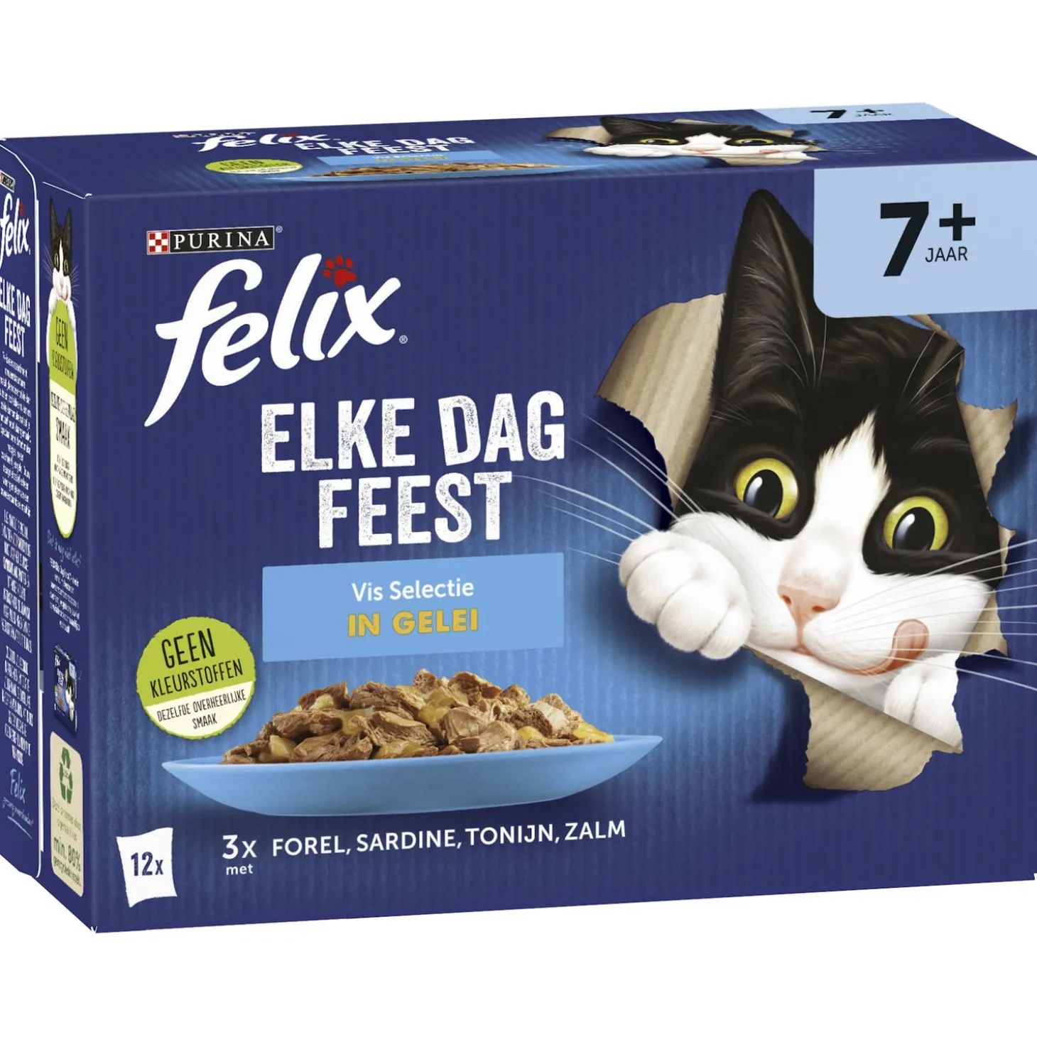 Wat is er nou lekkerder dan de natvoersensaties van Felix? De Felix Elke Dag Feest 7+ Vis Selectie in Gelei bevat 12 maaltijdzakjes die gevuld zijn met smakelijke vleesreepjes in combinatie met een onweerstaanbare gelei. Speciaal voor oudere katten die de 7 jaar zijn gepasseerd.