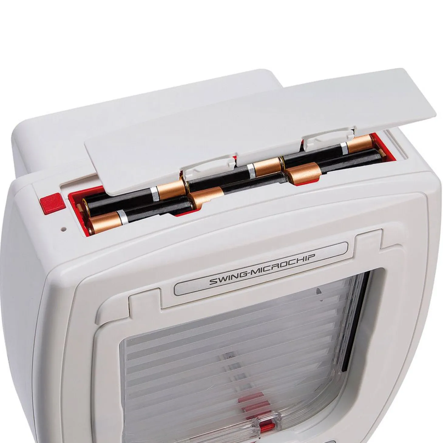 Dit nieuwe model deelt met Swing-huisdierflappen de speciale 4-standenvergrendeling, je huisdier kan dan óf alleen naar binnen, óf alleen naar buiten, óf het luik staat geheel open zodat de kat naar buiten en naar binnen kan óf het luik zit helemaal dicht. Bovendien, als je wilt dat de flap op de traditionele manier werkt, hoef je alleen maar het openingssysteem voor microchips uit te schakelen. De Swing Microchip is ook voorzien van een richtingwijzer in/out. Nadat de deur is dichtgegaan blijft het ‘vlaggetje’ op de onderkant van de deur in de richting staan die je huisdier heeft genomen.