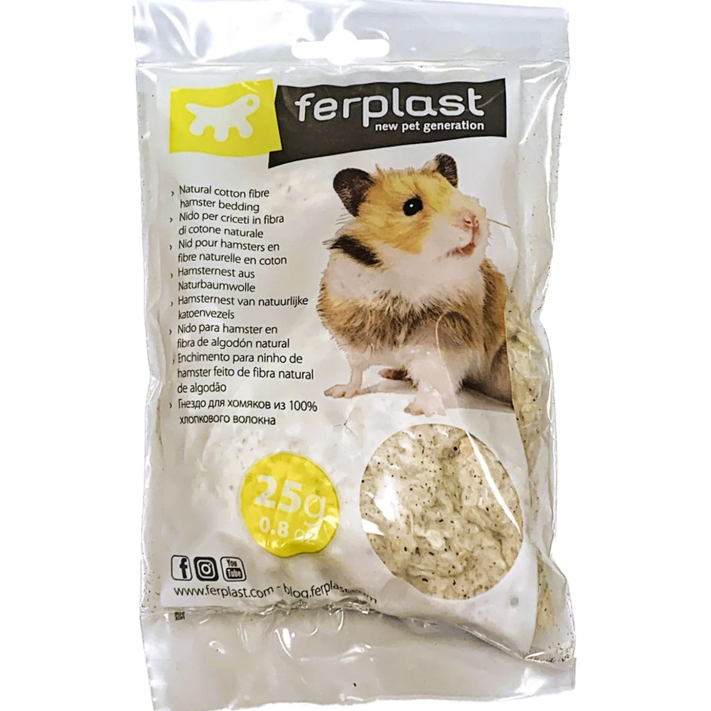 Hamsters zijn nachtdieren en hebben een donkere slaapplek nodig om in te slapen. Een huisje kan fijn zijn, maar sommige hamsters geven de voorkeur aan een zelf gegraven holletje. Het is daarom jouw taak om te zorgen voor het juiste nestmateriaal voor je hamster. Met het Hamsternest Katoen van Ferplast help je je hamster een handje met zijn nest.
