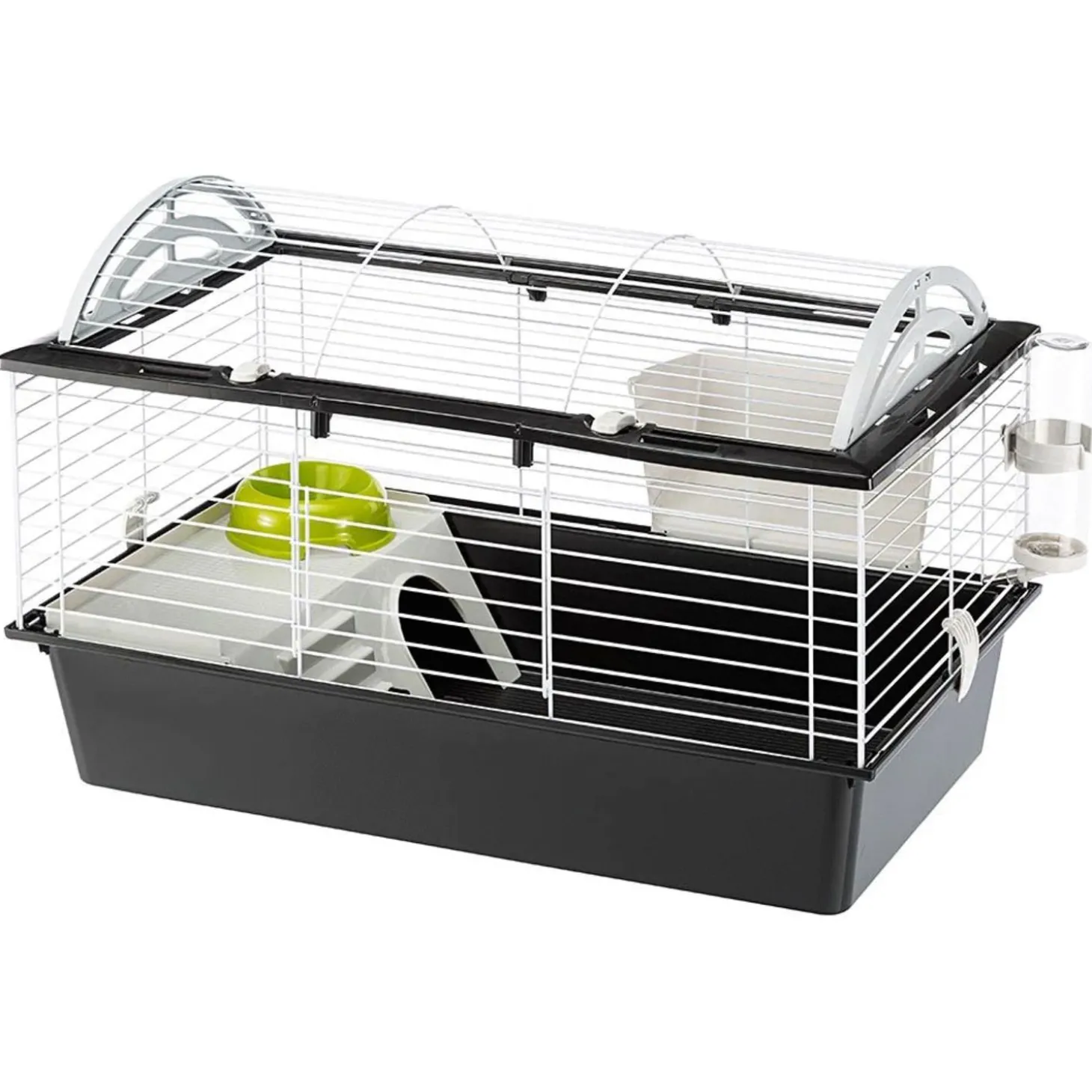 Casita heeft een afgerond dak dat open kan. Het grootste model is om praktische redenen opgedeeld in twee delen. Alle modellen worden geleverd met accessoires, waaronder een voerbak, een drinkfles, een voerbak en een huisje met een getrapte muur zodat je kleine vriend er gemakkelijk op kan klimmen. De schuifdeur kan worden geopend, zodat uw kleine huisdier af en toe uit de kooi kan rondlopen door het huis. Deze kooi is heel gemakkelijk schoon te maken: open gewoon het dak en je kunt bij alle onderdelen die grondiger moeten worden schoongemaakt. Dankzij het Save Space-systeem kan Casita volledig worden gedemonteerd.