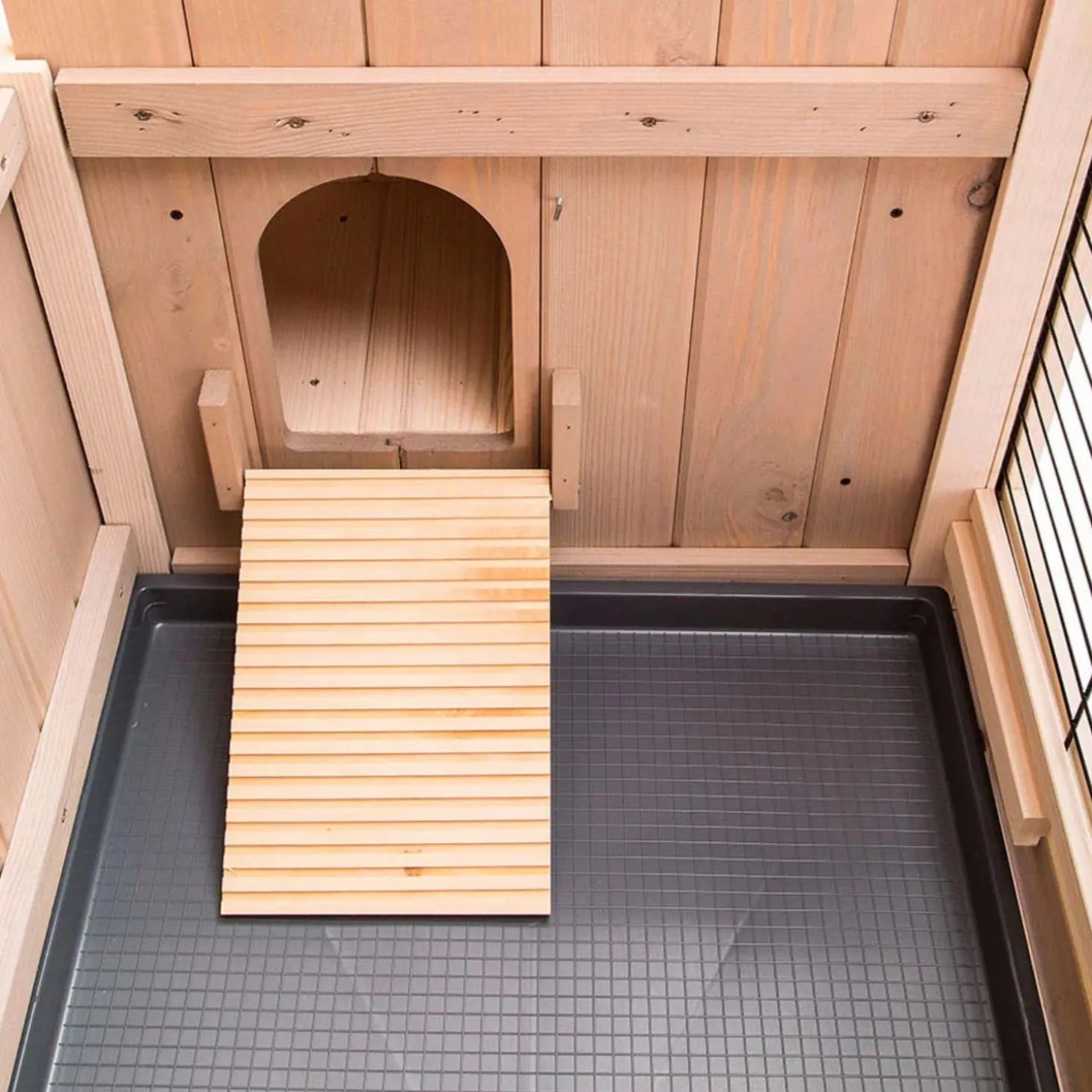 - Zet het hok niet met de voorkant op het noorden of oosten. De wind uit deze richtingen is vaak koud en nat. De beste plek is de opening op het zuiden.