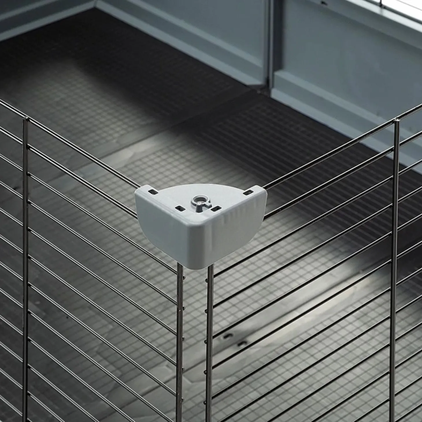 De bovenkant van de kooi is gemaakt van metalen tralies. De onderkant is gemaakt van gerecycled plastic zodat de bodembedekking niet snel uit de kooi kan vallen. De onderdelen zitten aan elkaar vast met stevige clips. De Multipla is makkelijk in elkaar te zetten, zonder speciaal gereedschap. De kooi is modulair en kan dus uitgebreid worden met andere onderdelen. Het gehele Multipla-assortiment bestaat uit: