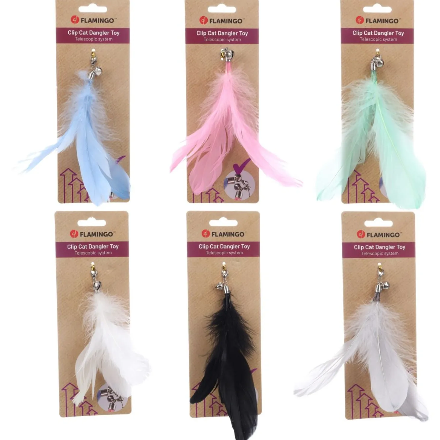 Deze handige clip-on speeltjes geven je kattenhengel een tweede leven! De enkele grote natuurlijke veer met rinkelend kattenbelletje zorgt voor nieuwe uitdagingen en blijft je kat urenlang boeien. Door regelmatig te wisselen van speeltje houdt je kat interesse in het spel.