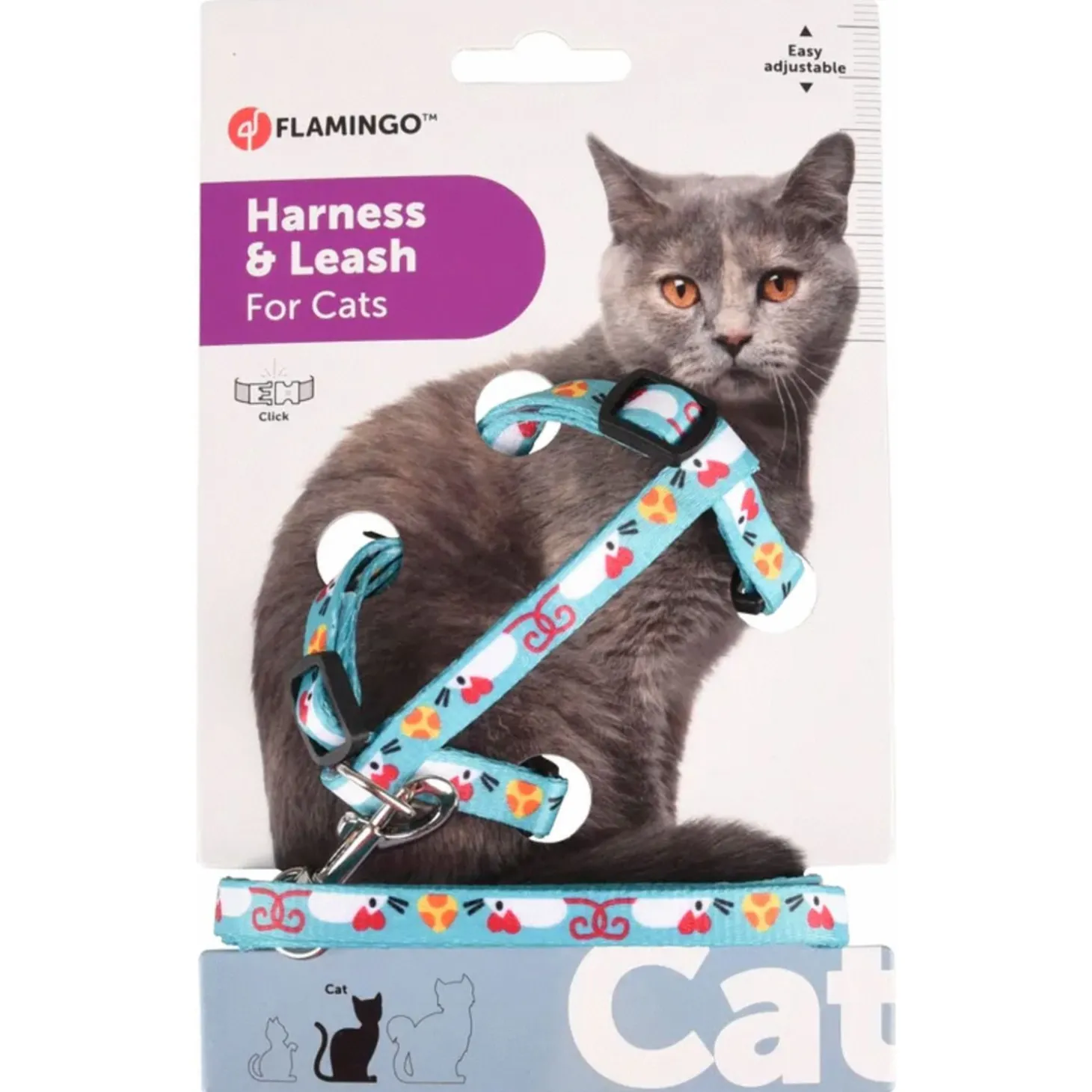 - Het harnas heeft een kliksluiting en de lijn heeft een karabijnhaak