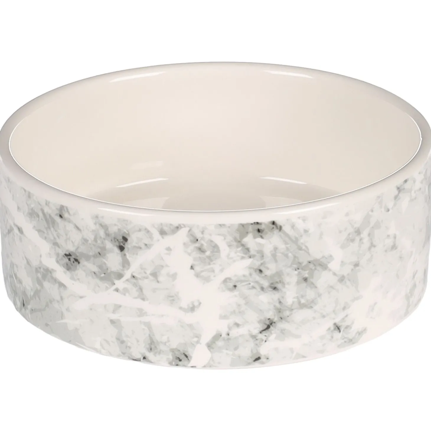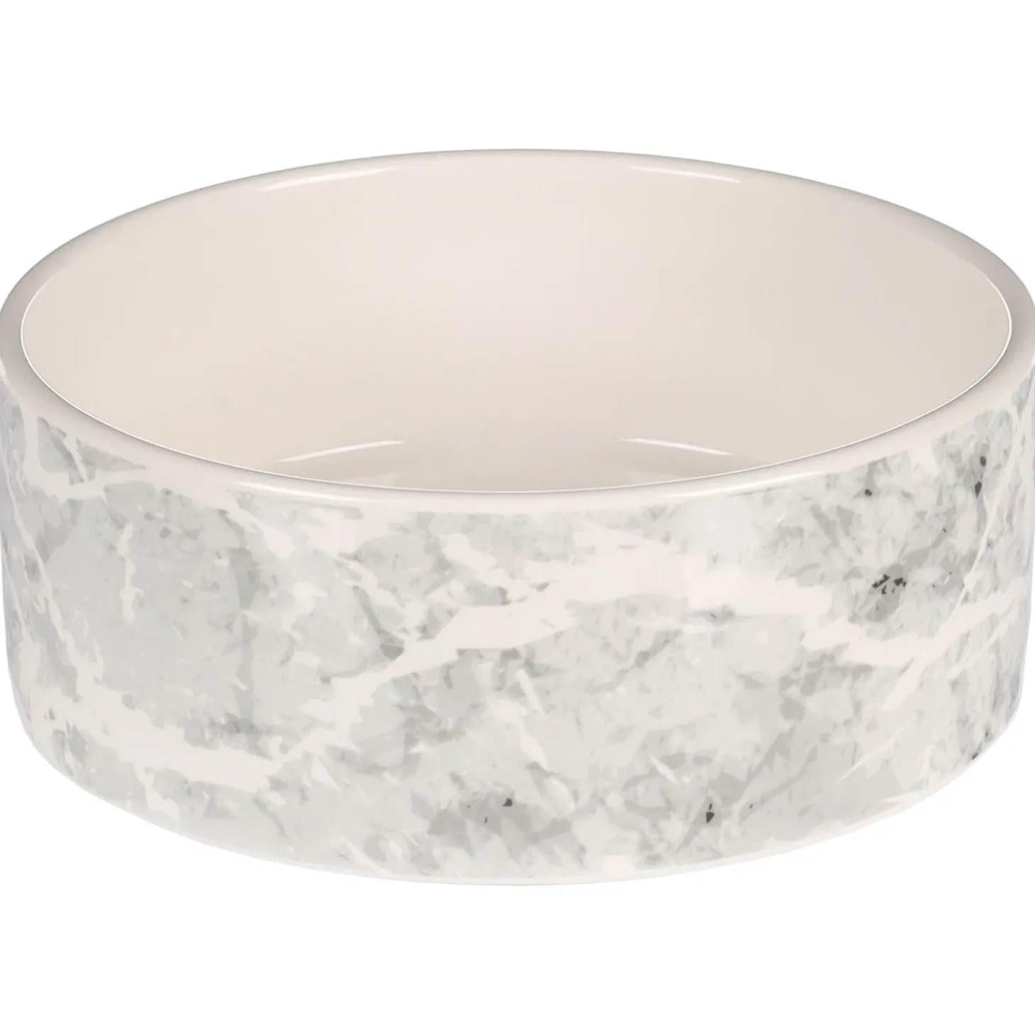 Het marmeren keramische voerbakje is verkrijgbaar in 400 ml, 900 ml en 1700 ml.