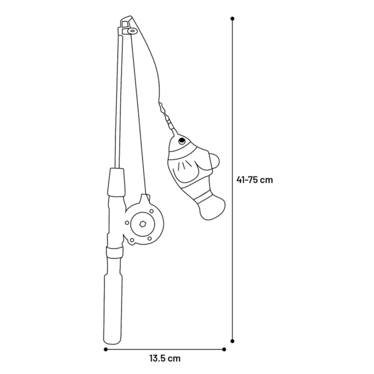 - Uitschuifbare hengel van 41 tot 75 cm met elastiek