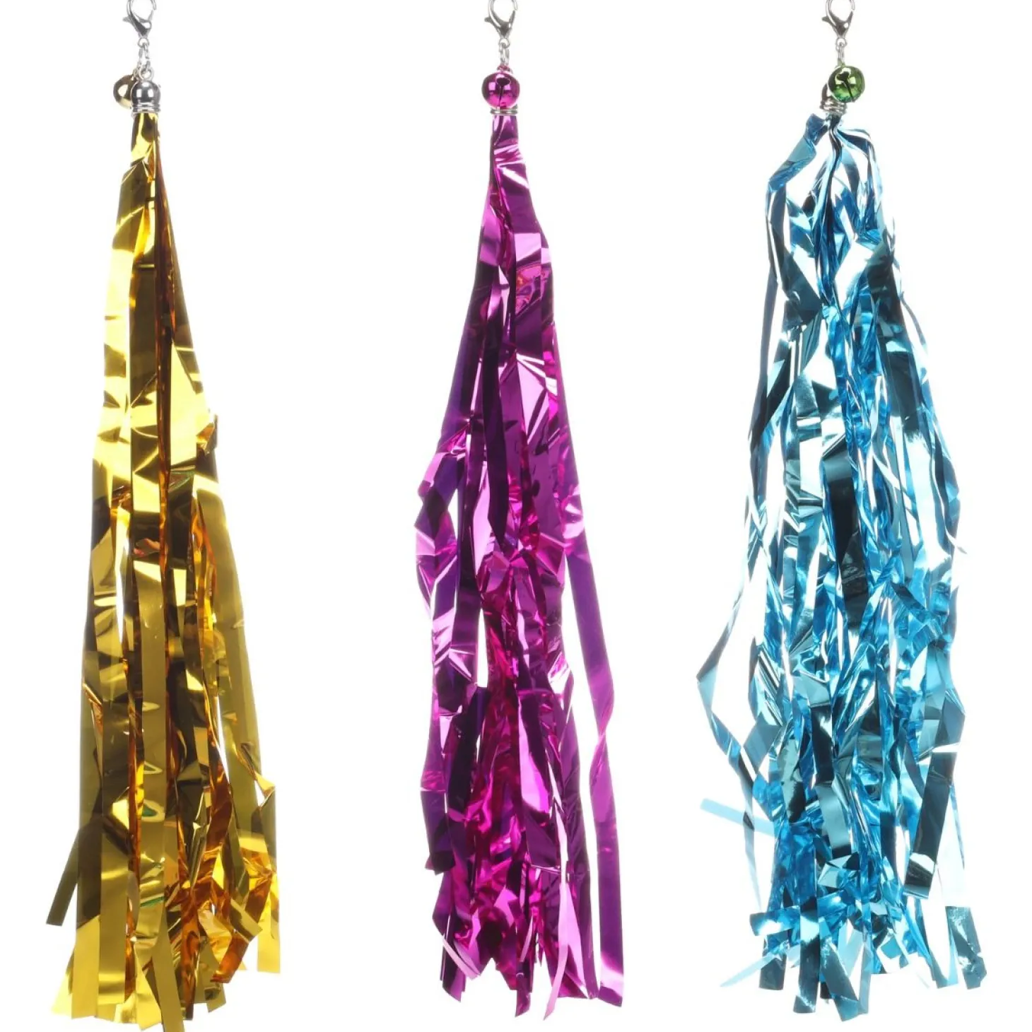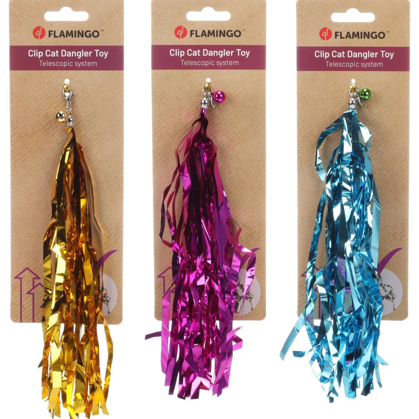 Deze handige clip-on speeltjes geven je kattenhengel een tweede leven! De glinsterende metallic slierten gecombineerd met een rinkelend kattenbelletje zorgen voor nieuwe uitdagingen en blijven je kat urenlang boeien. Het reflecterende materiaal vangt licht en creëert extra visuele prikkels die katten onweerstaanbaar vinden.