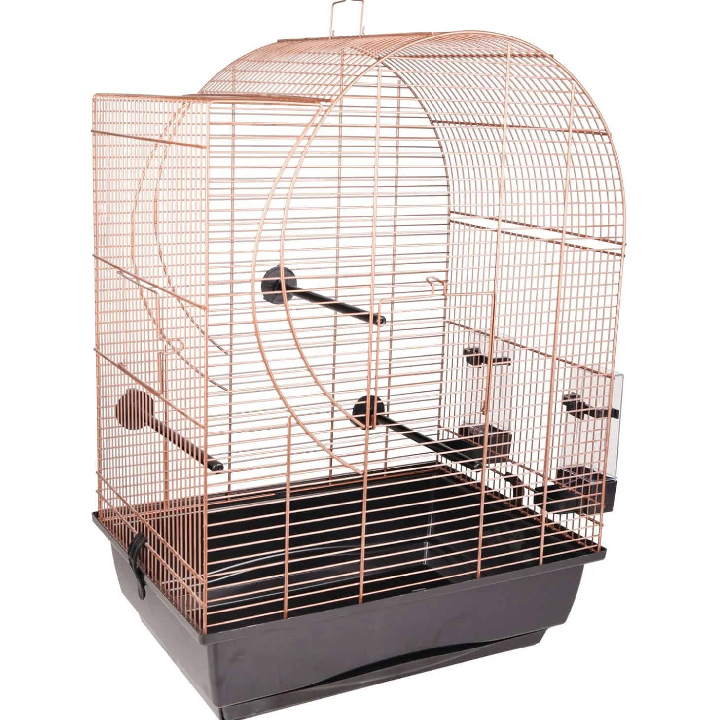 - 3 kunststof zitstokken en 2 afneembare eet-/drinkbakjes