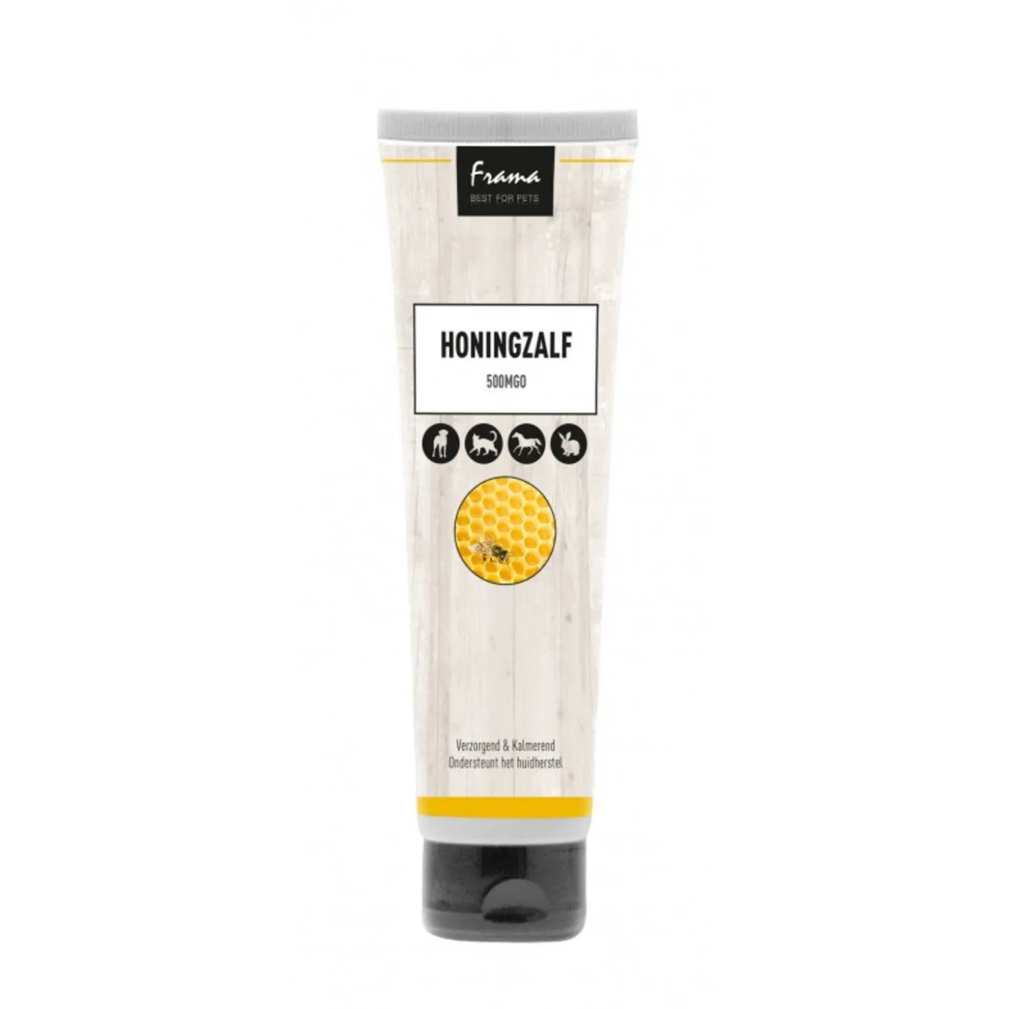 Frama Honingzalf Manuka Tube is een doeltreffend product voor de verzorging van onze geliefde huisdieren, speciaal ontwikkeld om diverse huidaandoeningen aan te pakken en de huid gezond en soepel te houden. Deze unieke zalf, verrijkt met Manuka honing, staat bekend om zijn effectiviteit bij het behandelen van huidirritatie, snij- en schaafwonden, insectenbeten, hotspots, kloven en ontstekingen. Daarnaast wordt het veelvuldig gebruikt om de huid te hydrateren en te voeden, waardoor het ideaal is voor dagelijks gebruik. Of het nu gaat om het voorkomen van infecties na een operatie of het verminderen van littekenvorming, Frama Honingzalf biedt een natuurlijke en effectieve oplossing voor verschillende huidproblemen. Met een hoog gehalte aan Methylglyoxal (MGO) in de Manuka honing, biedt deze zalf een krachtige antibacteriële werking die bijdraagt aan een snellere genezing en herstel van de huid.