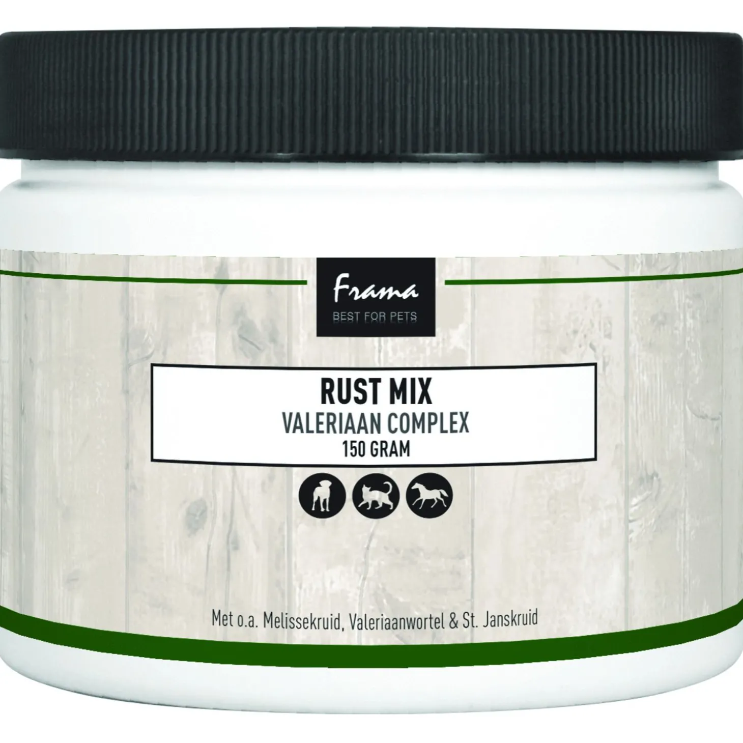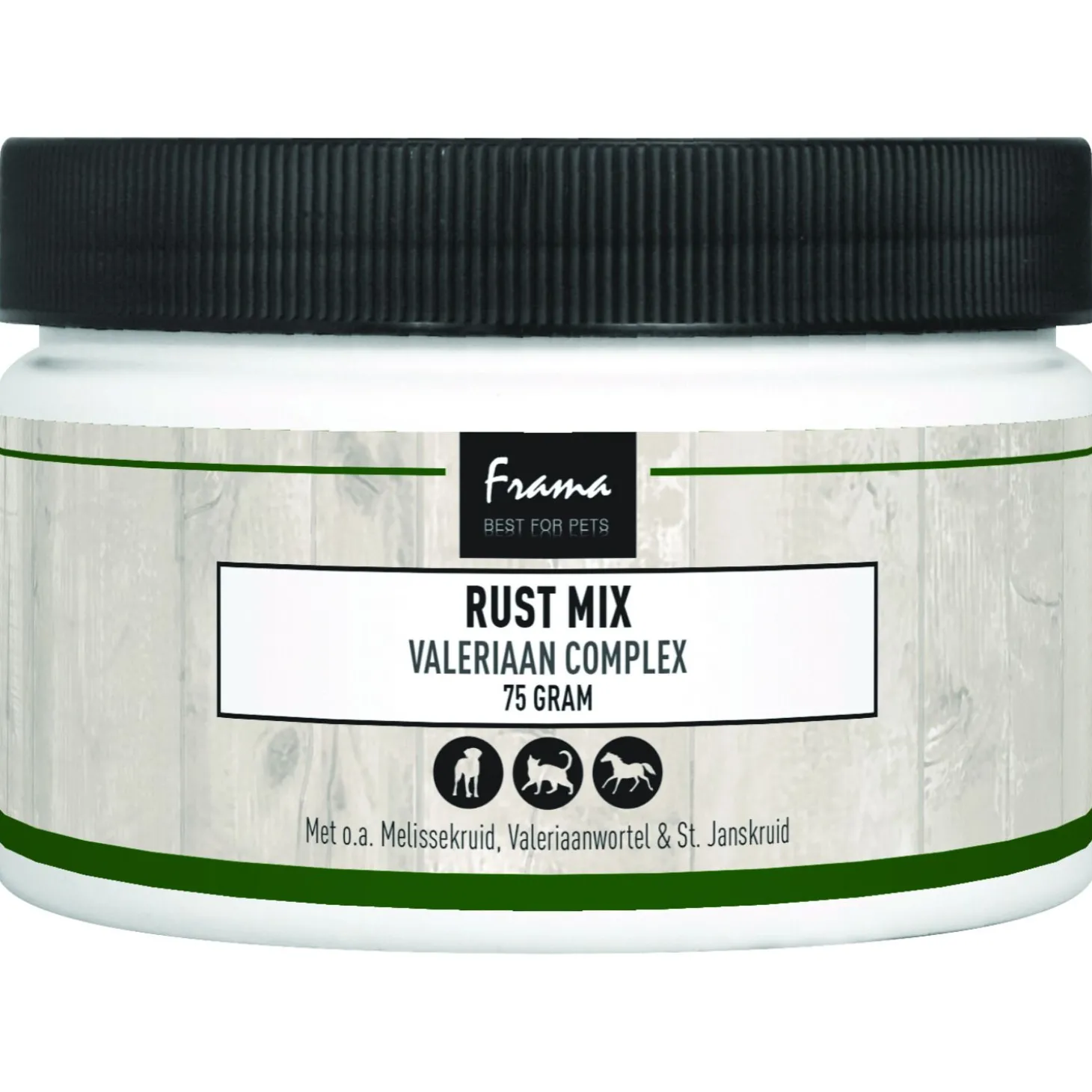 Frama Rustmix Valeriaan Complex is een kruidenmix die specifiek is samengesteld om huisdieren te ondersteunen tijdens periodes van stress en spanning. Of het nu gaat om ongewone activiteiten zoals autoritten of de onrust die gepaard gaat met vuurwerk tijdens de decembermaand, deze mix biedt een natuurlijke en kalmerende oplossing voor huisdieren.Het bevordert een gevoel van evenwicht en kalmte, waardoor huisdieren zich beter kunnen aanpassen aan stressvolle situaties en een rustiger gedrag kunnen vertonen. De kracht van Frama Rustmix Valeriaan Complex ligt in zijn zorgvuldig geselecteerde ingrediënten, elk met hun eigen unieke eigenschappen. Melissekruid staat bekend om zijn rustgevende en ontspannende effecten, waardoor het ideaal is bij stress, geestelijke druk en irritatie. Daarnaast heeft het een specifiek ontspannend effect op de spijsvertering, wat bijdraagt aan een algeheel gevoel van welzijn. Valeriaanwortel staat bekend om zijn kalmerende eigenschappen en het vermogen om krampen te verlichten, waardoor het effectief is bij angst en nerveuze spanning. Sint-Janskruid, Duizendguldenkruid en Onzelievevrouwebedstro completeren de mix door hun rustgevende, kalmerende en slaapbevorderende eigenschappen, waardoor ze een uitgebreide ondersteuning bieden aan het zenuwstelsel en de gemoedstoestand van huisdieren.