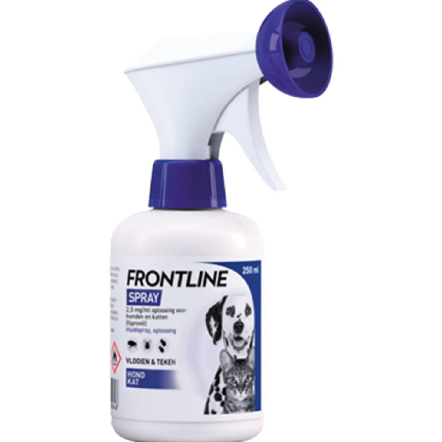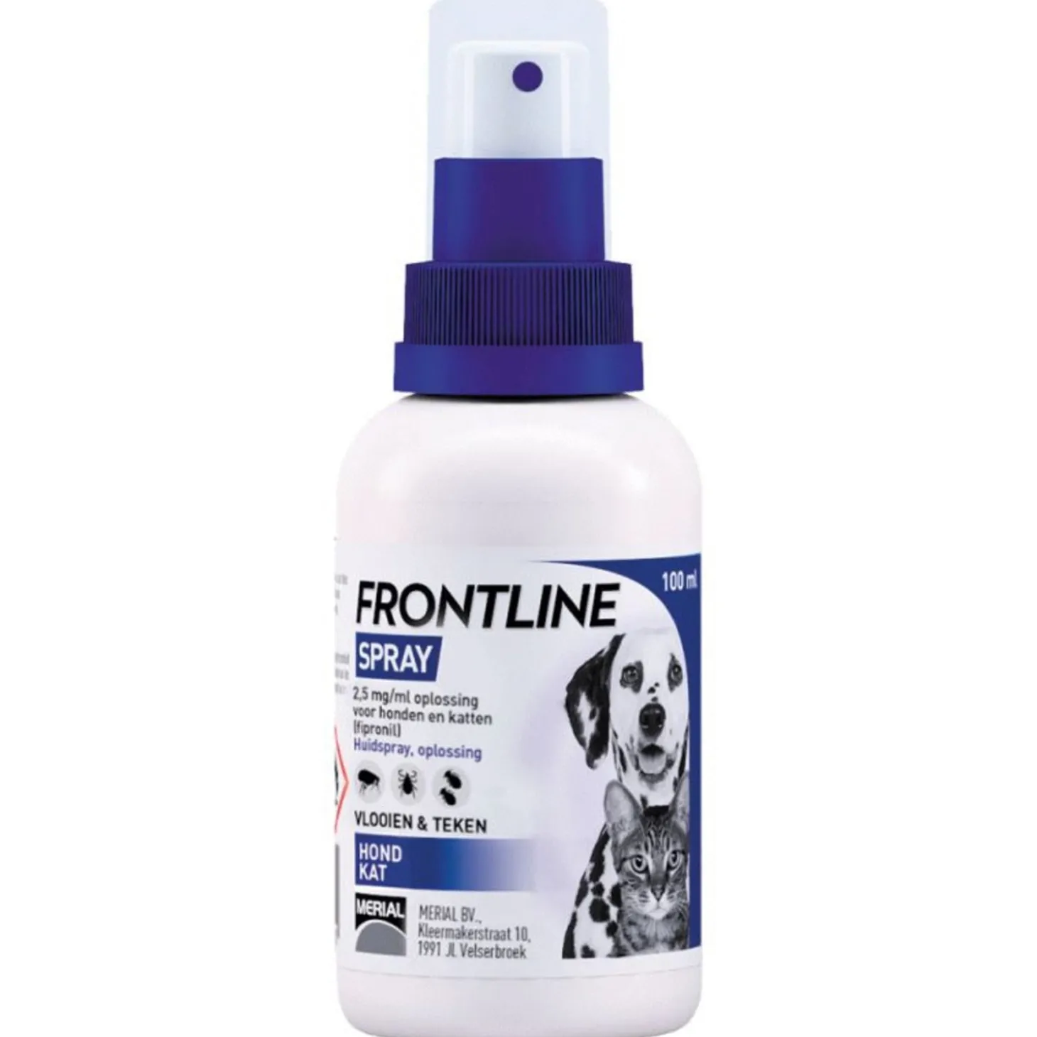 Het hele jaar door kan je hond of kat geteisterd worden door vlooien en teken. Door gebruik te maken van Frontline Spray bied je je dier bescherming tegen vlooien, teken en bijtende luizen. Je spuit het product direct op je hond en/of kat. Doseer het middel op basis van de instructies in de bijsluiten, waar je ook enkele praktische tips vindt.
