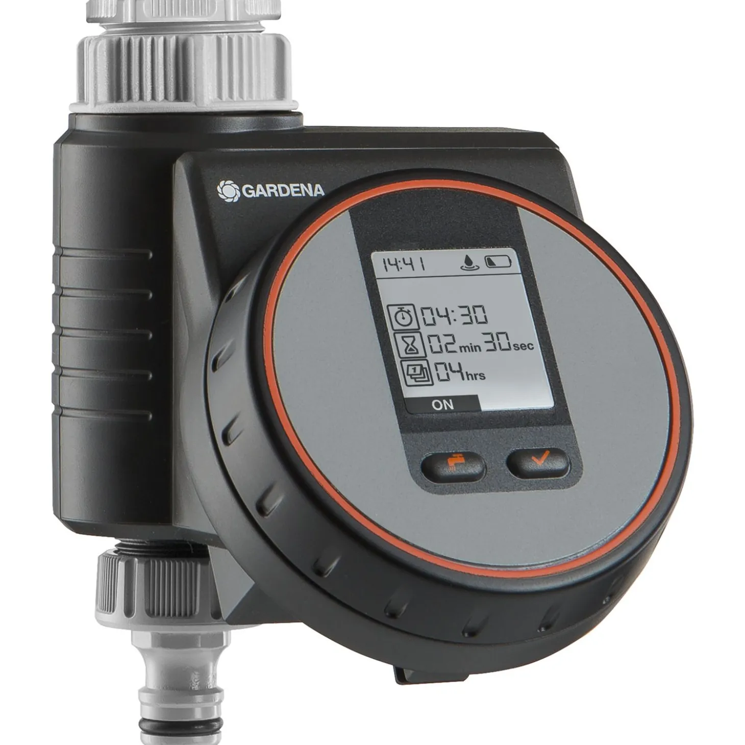 Het op batterijen werkende apparaat kan direct op de kraan worden aangesloten en kan worden bediend met een innovatieve, roterende knop. Met deze knop selecteer en bevestig je eenvoudig het gewenste programma.