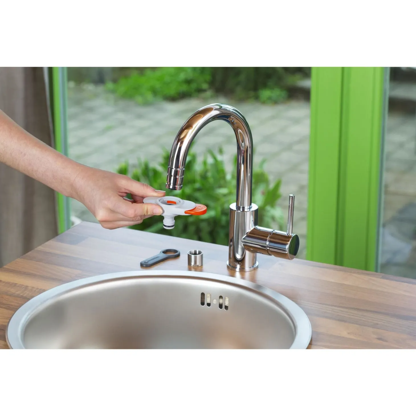 - Compatibel met alle conventionele kranen met M 24 x 1 binnen- of M 22 x 1 buitendraad