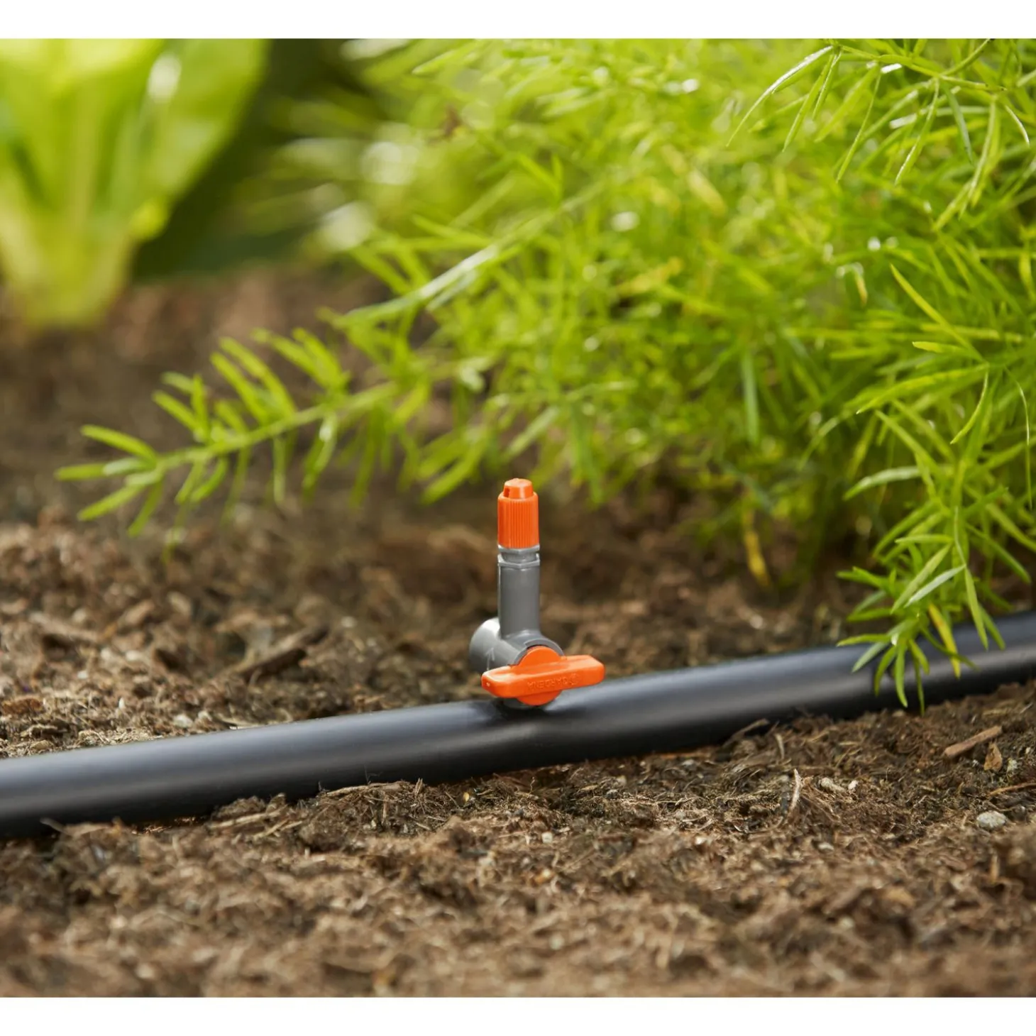 Dit Regelventiel van Gardena is onderdeel van het Gardena Micro-Drip-System. Hiermee kan de toevoer en het bereik van de sproeiers worden aangepast. Zo kan je de hoeveelheid water optimaal instellen, aangepast aan de situatie.