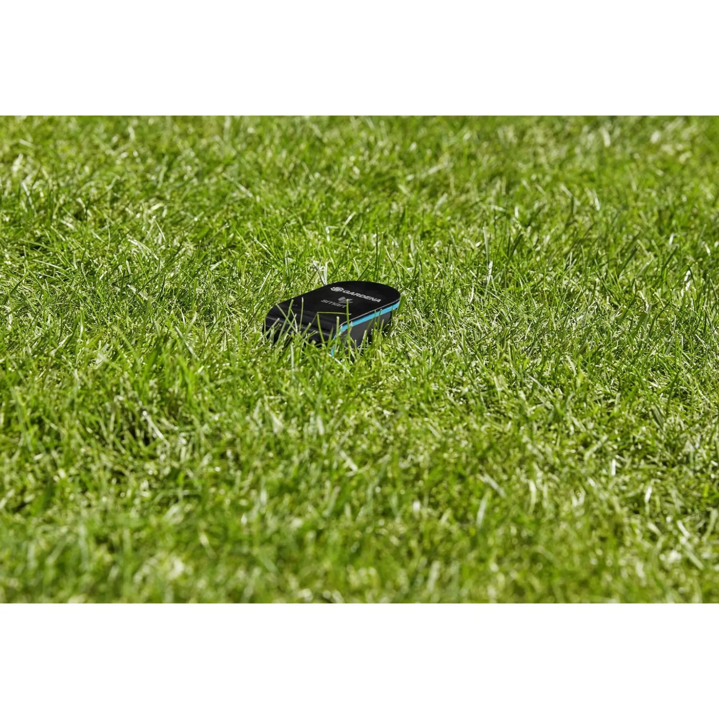 Dankzij de platte bovenkant kan de sensor ook midden in een gazon worden gestoken waar overheen wordt gemaaid. Het apparaat werkt op 2 AA-batterijen (niet inbegrepen). De actuele meetgegevens worden via radiosignalen naar de Smart Gateway gestuurd, die het vervolgens naar de app verzendt. De Smart Gateway is in alle Gardena Smart System Start Sets opgenomen (niet inbegrepen bij dit product).