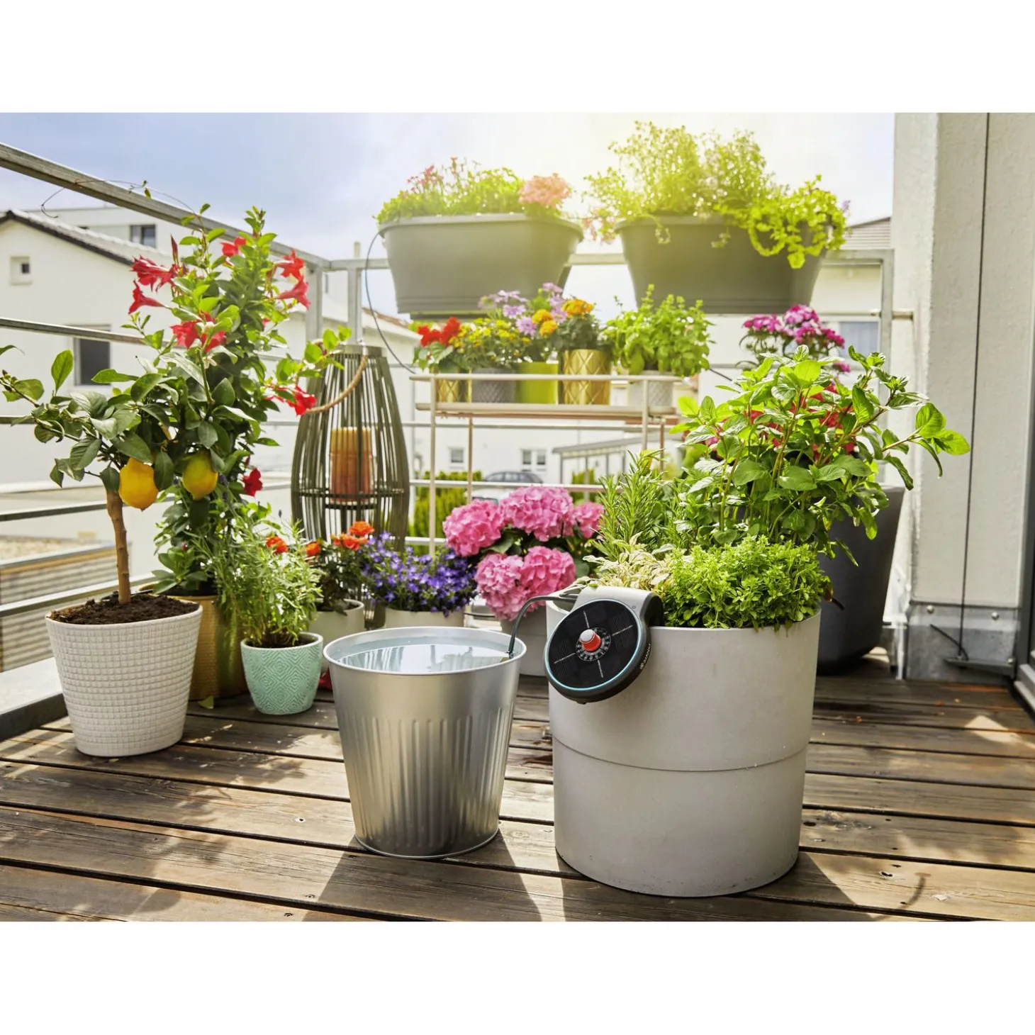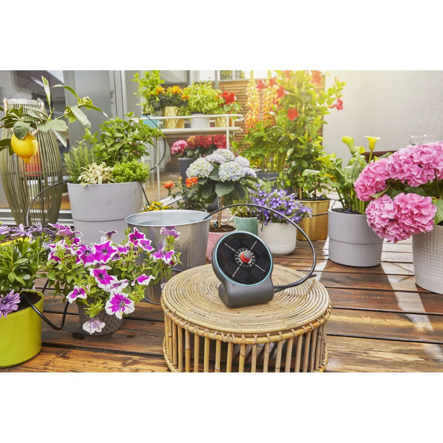 Op vakantie gaan is heerlijk, maar wie onderhoudt de tuin? Wat dacht je van de Vakantiebewateringsset AquaBloom van Gardena. Met deze set zijn je balkon- en potplanten in goede handen, het enige wat je hoeft te doen is zorgen voor een gevuld waterreservoir. Het apparaat werkt op zonne-energie en je hebt geen waterkraan of stopcontact nodig.