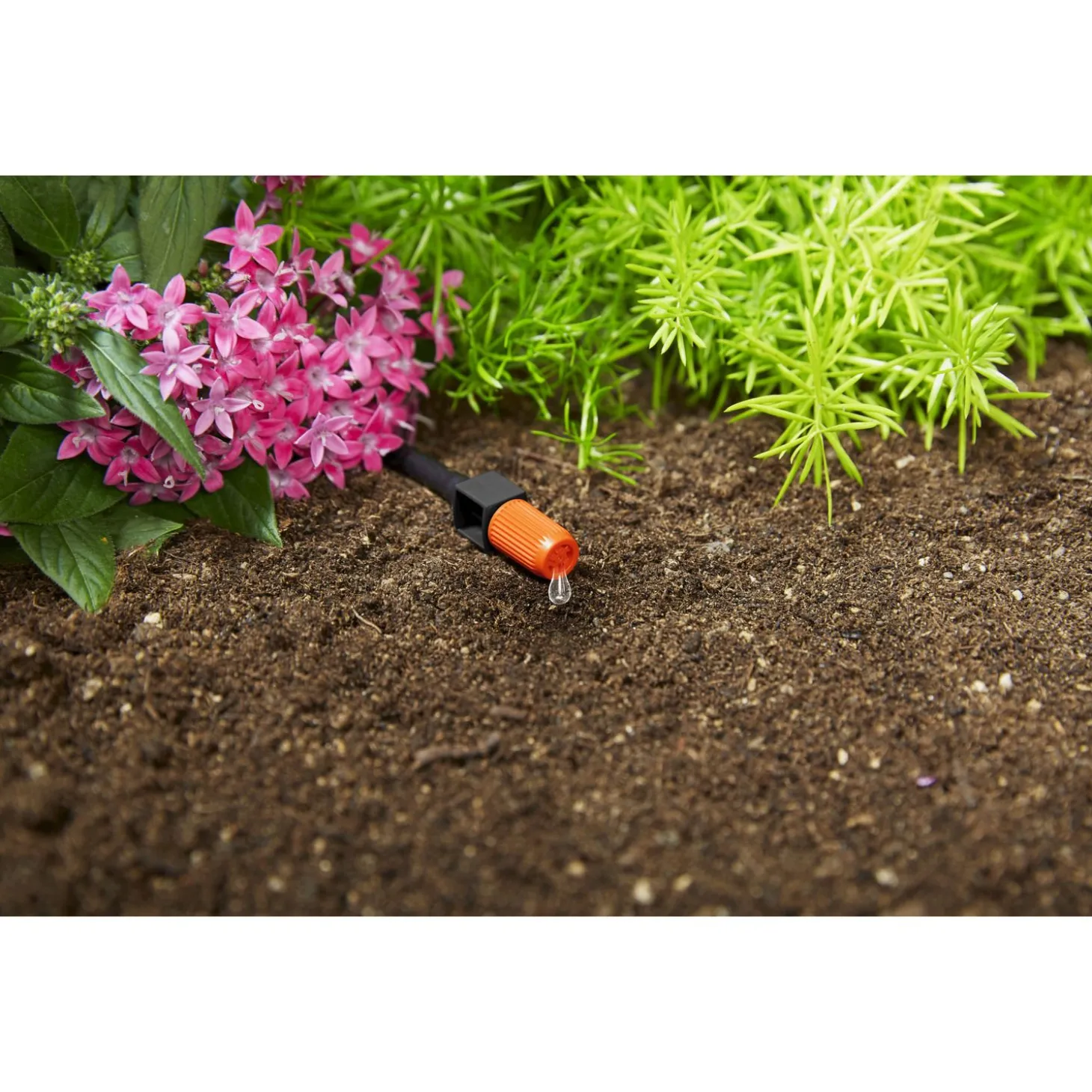 Deze Verstelbare Einddruppelaar van Gardena is onderdeel van het Gardena Micro-Drip-System, voor het plaatselijk besproeien van aparte planten of voor langere rijen planten met verschillende waterbehoeftes. De waterverdeling kan worden ingesteld tussen de 0 en +- 20 liter per uur. Het afneembare klepje bevat een geïntegreerde reinigingsnaald waarmee een vuile druppelaar eenvoudig kan worden gereinigd.