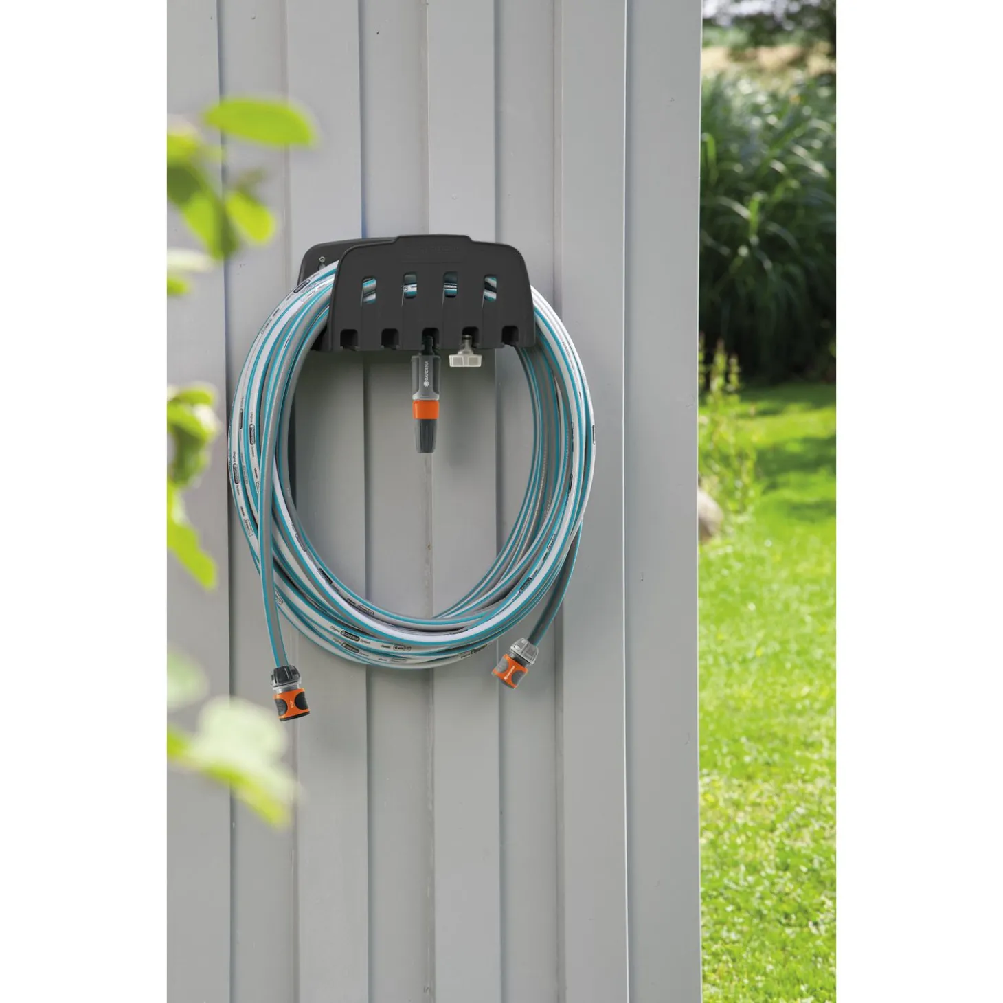 Een eenvoudige manier om je tuinslang op te bergen, is met de Wandslanghouder van Gardena. Monteer de houder aan de muur en rol de slang gemakkelijk op en af. De houder heeft praktische openingen voor het ophangen van sproeiers, broezen of tuinspuiten. Geschikt voor de volgende formaat slangen: