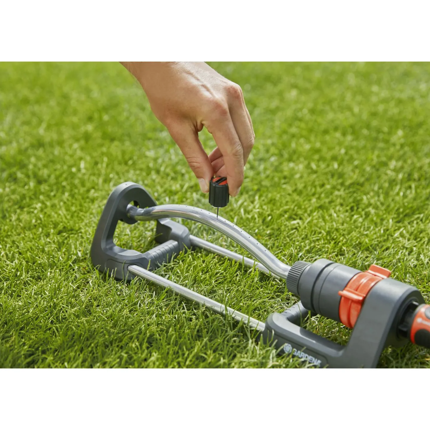 Plaats de sproeier op het gazon en stel het bereik in tussen 7 en 17 meter met behulp van de schuifregelaar. Het breedtebereik van de Aqua S is maximaal 13 meter. Sluit de slang aan, draai de kraan open en je planten worden besproeid. Fijn voor je planten, maar ook fijn voor jezelf omdat je zo geen tijd kwijt bent aan het bewateren.