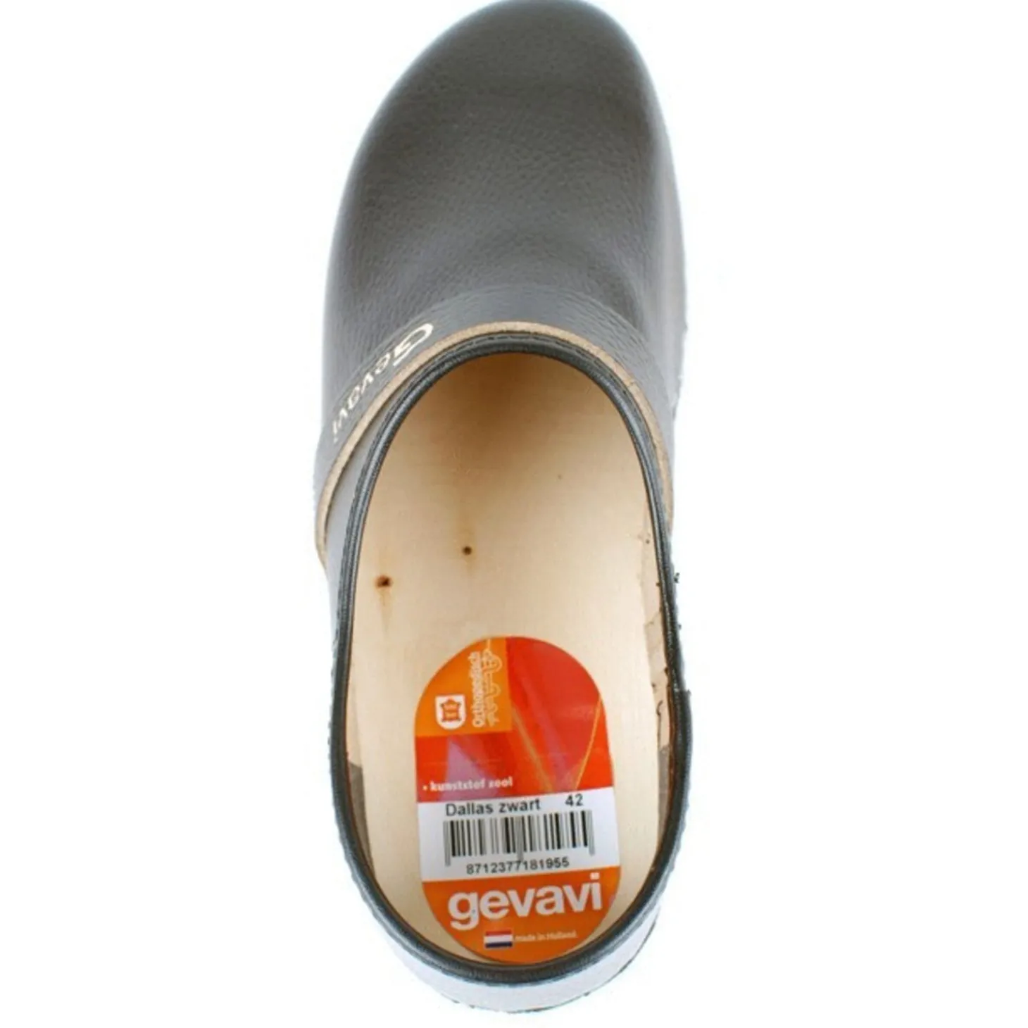De Schoenklomp Dallas is zwart van kleur en is verkrijgbaar in verschillende maten.