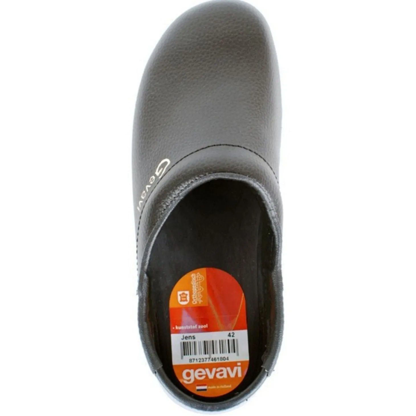 Op zoek naar een comfortabele schoenklomp met brede instap? Zoek dan niet verder dan de Schoenklomp Jens van Gevavi. Deze klomp is voorzien van een PU loopzool, houten binnenzool en gesloten hiel. De klomp is zeer duurzaam en gaat lang mee dankzij onder andere de generfde, 100% rundlederen kap. De jens is voorzien van een comfortabele polster en een extra ruime instap.