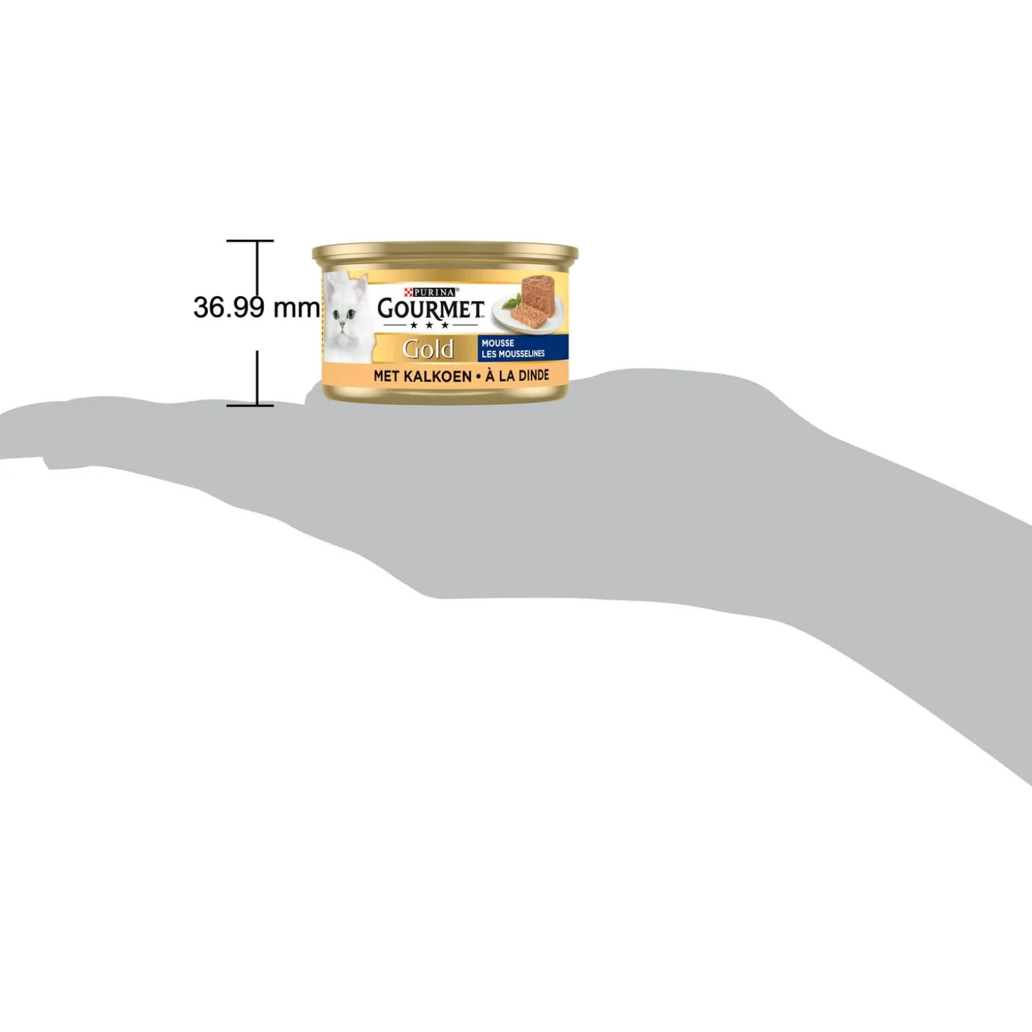 De Gourmet Golden Mousse bevat 24 blikjes van elks 85 gram. In de Pets Place winkel zijn de blikjes per stuk te koop.