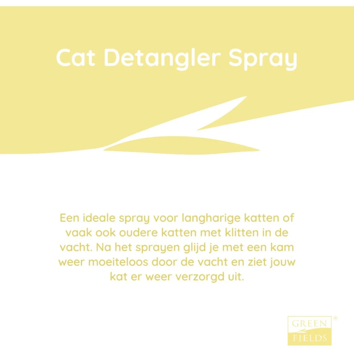 | Aanbeveling | Schudden voor gebruik. Spray op de droge vacht of nadat je je kat hebt gewassen met Greenfields kattenshampoo. Masseer in en laat één minuut intrekken. Uitspoelen is niet nodig. Kam de vacht uit. |