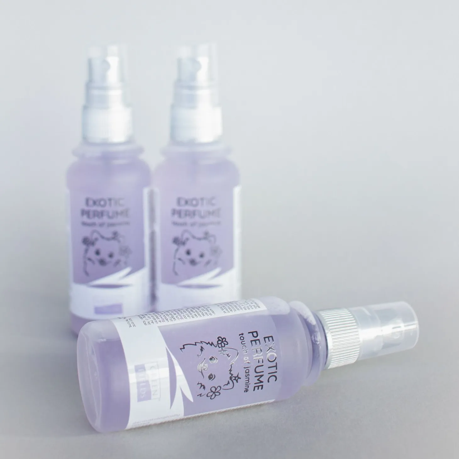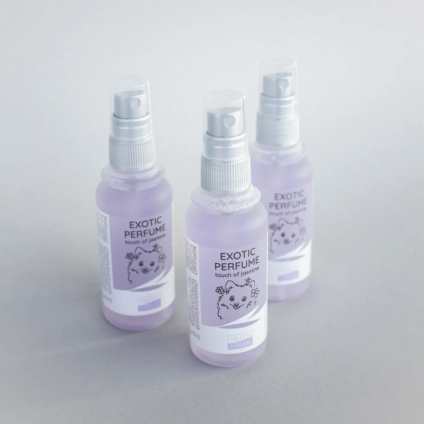 Soms kan je viervoeter wel een verfrissend geurtje gebruiken tussen de wasbeurten door. Greenfields Hondenparfum Exotic is een hondenparfum op waterbasis en neutraliseert en elimineert onaangename geurtjes. Het is een frisse geur van jasmijn, sandelhout en musk. De parfum is pH neutraal en vrij van allergenen en parabenen.