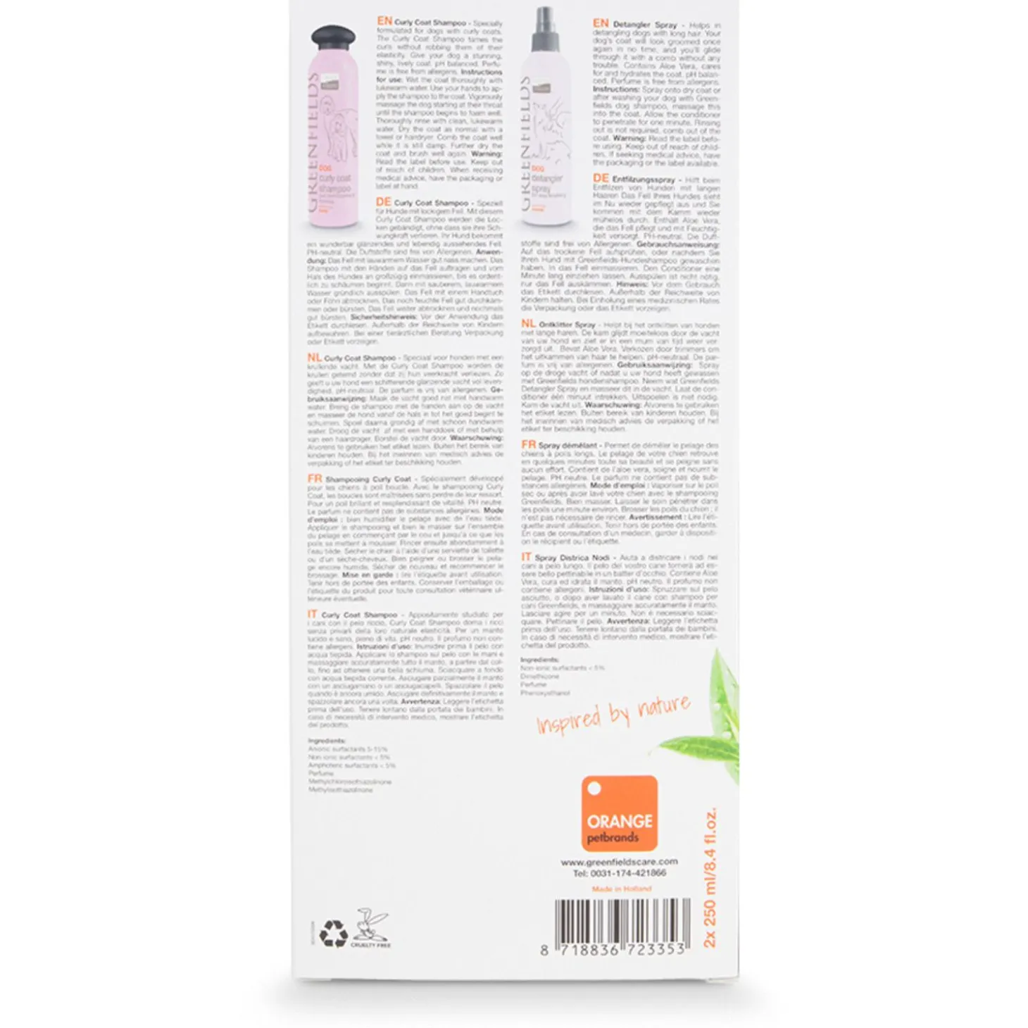 - Deze set bevat een shampoo voor gekrulde vacht en een anti-klit spray