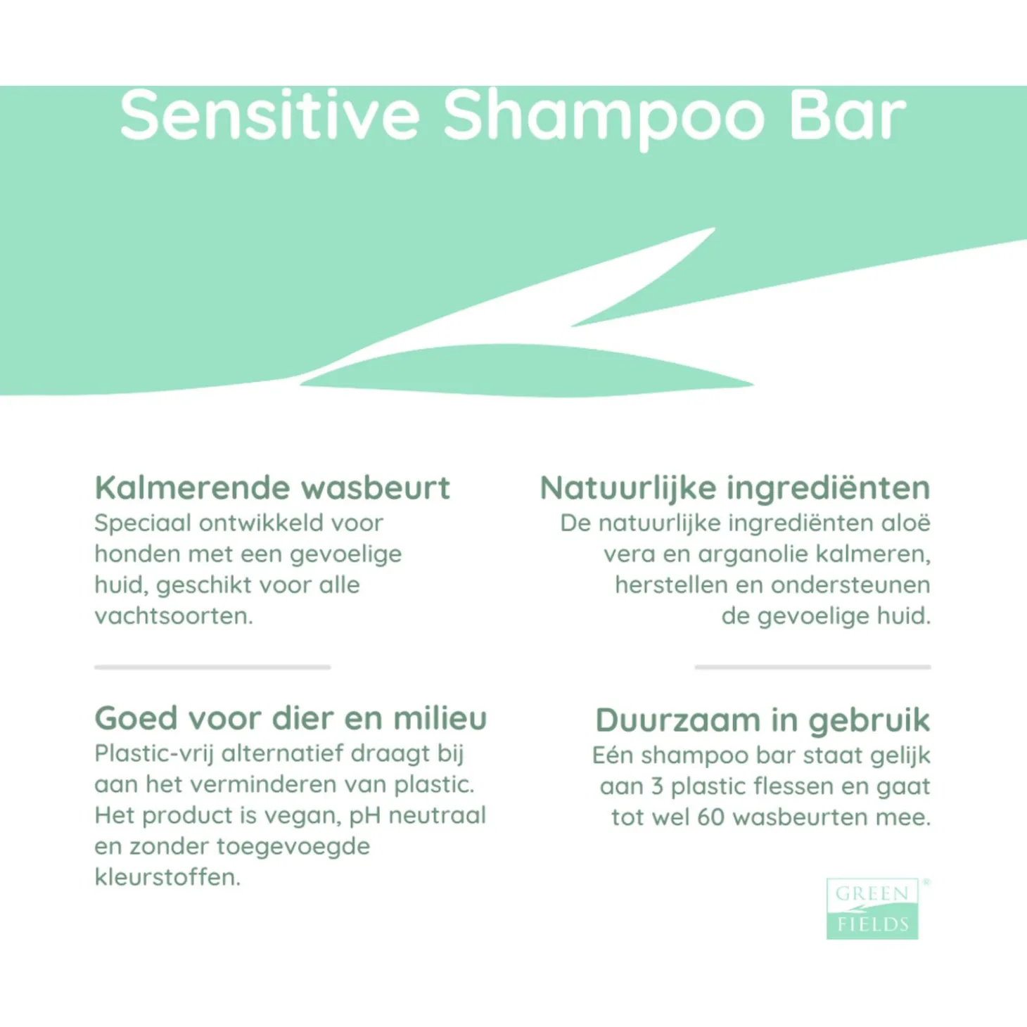 Soms kan je viervoeter wel een heerlijke verfrissende wasbeurt gebruiken. De Greenfields Sensitive Shampoo Bar is plasticvrij en speciaal ontwikkeld voor honden met een gevoelige huid en vacht. De bar bevat natuurlijke ingrediënten zoals aloë vera en argan olie. De aloë vera kalmeert de huid en de argan olie bevat veel vitaminen, mineralen en vetzuren, welke het herstel van een beschadigde of gevoelige vacht ondersteunt.