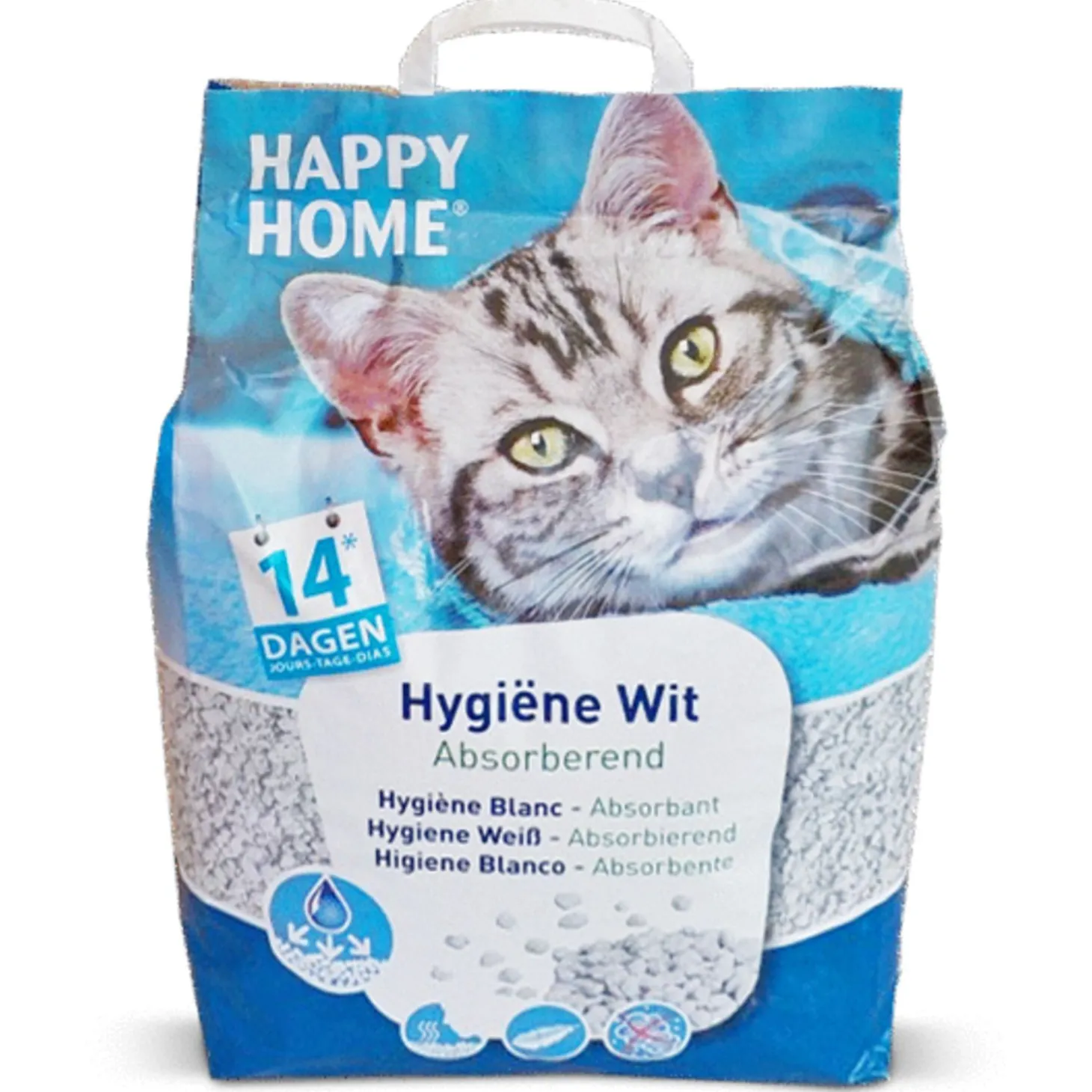 Happy Home White is een kattenbakvulling bestaande uit niet-klonterende en super absorberende mineraalkorrels. De grove korrels in dit grit kunnen meer dan 100% van hun eigen gewicht absorberen, om zo veel mogelijk urine op te kunnen nemen.