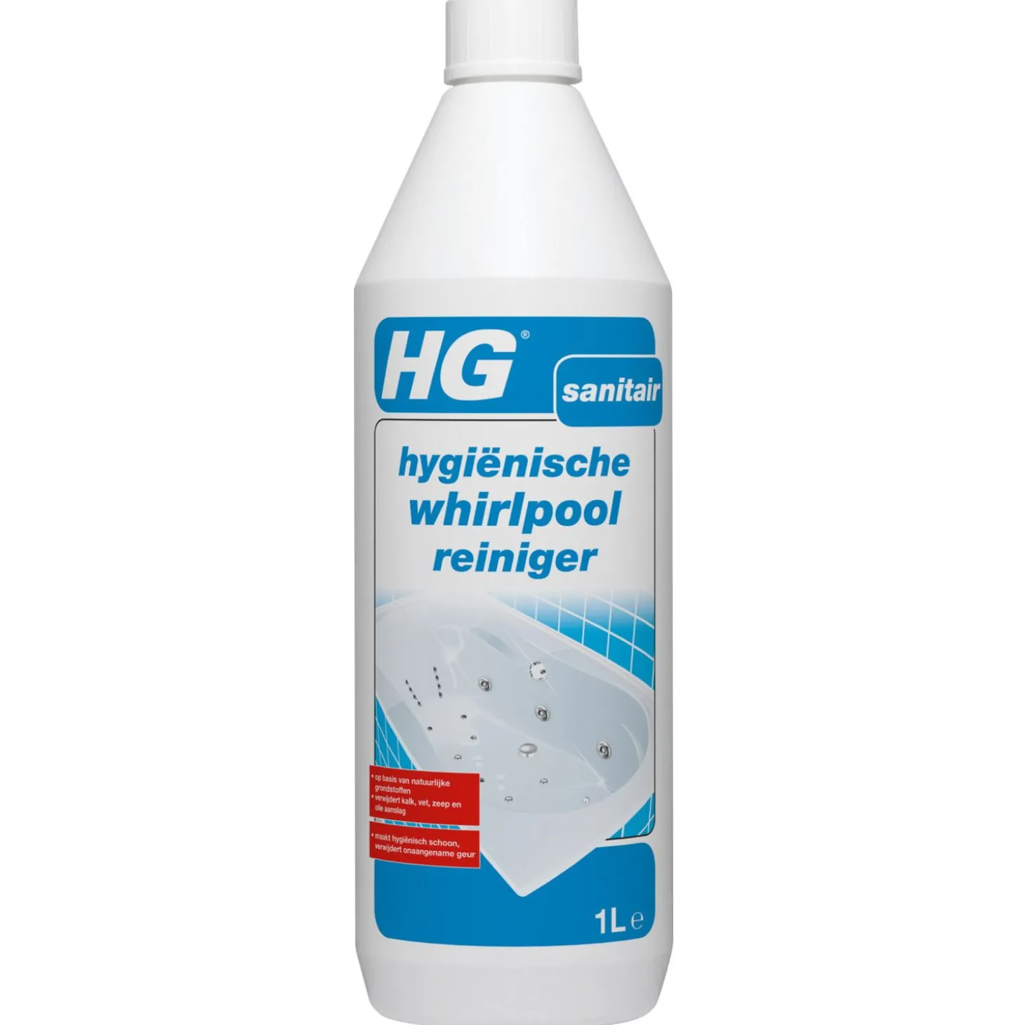 | Aanbeveling | Voor whirlpools met een intern (semi) automatisch reinigingssysteem: Vullen het interne reinigingssysteem met HG hygiënische whirlpool reiniger. Volg vervolgens de gebruiksaanwijzing van de whirlpool. Voor whirlpools zonder intern reinigingssysteem: Vul de whirlpool met warm water tot 5cm boven de hoogste openingen van de water- of lucht jets. Doseer 50 tot 75ml van HG hygiënische whirlpool reiniger direct in het bad. Stel het systeem in werking en laat deze gedurende 15 minuten werken. Laat het bad leeglopen en spoel het na met schoon water. Om opbouw van vervuiling te voorkomen de behandeling, afhankelijk van het gebruik van de whirlpool, één keer in de 2 a 3 weken herhalen. Bewaarrichtlijn: Attentie:Fles rechtop vervoeren en bewaren. Vorstvrij bewaren. |