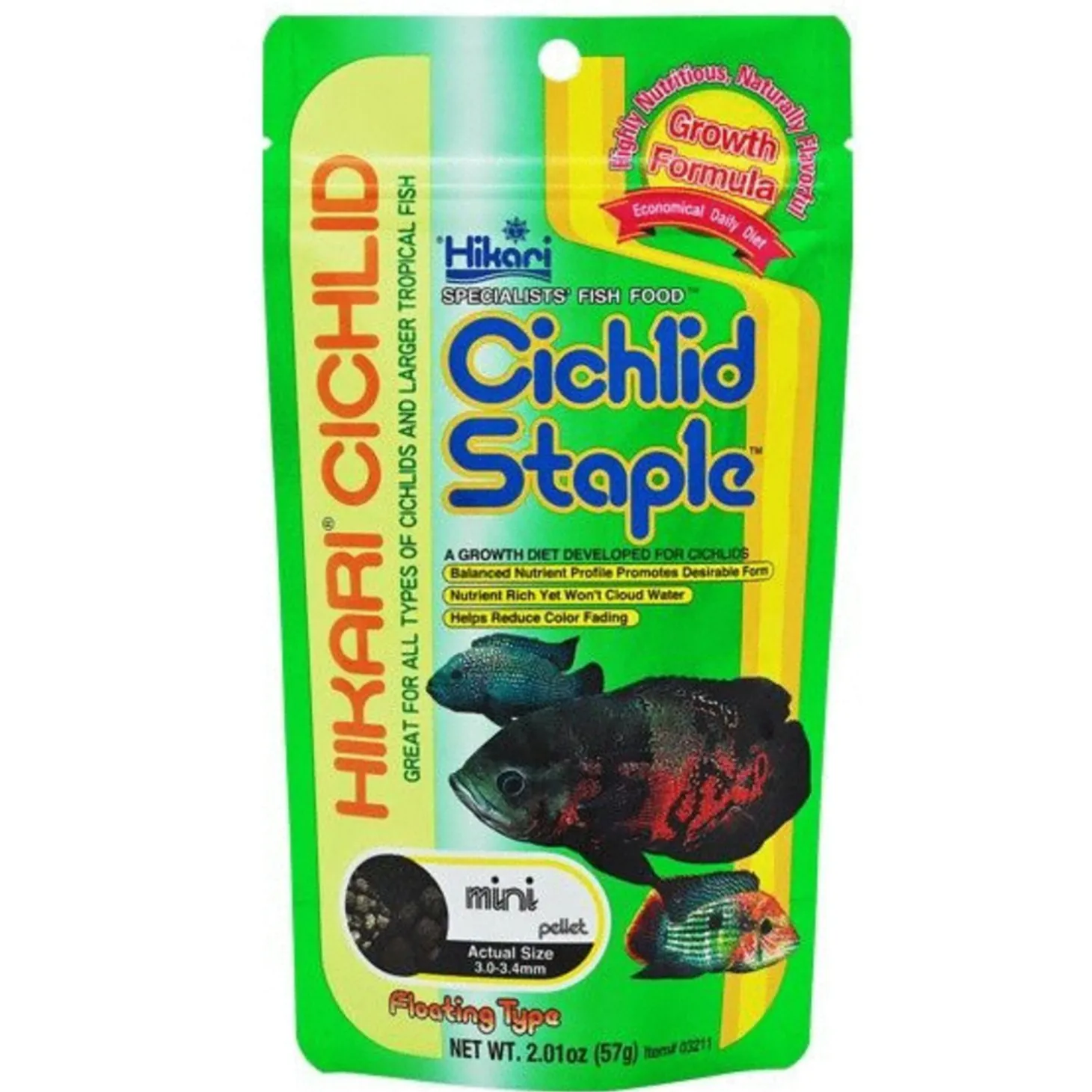 - Dagelijks drijvend korrel groeivoer voor carnivore cichliden, rijk aan vitamine C.