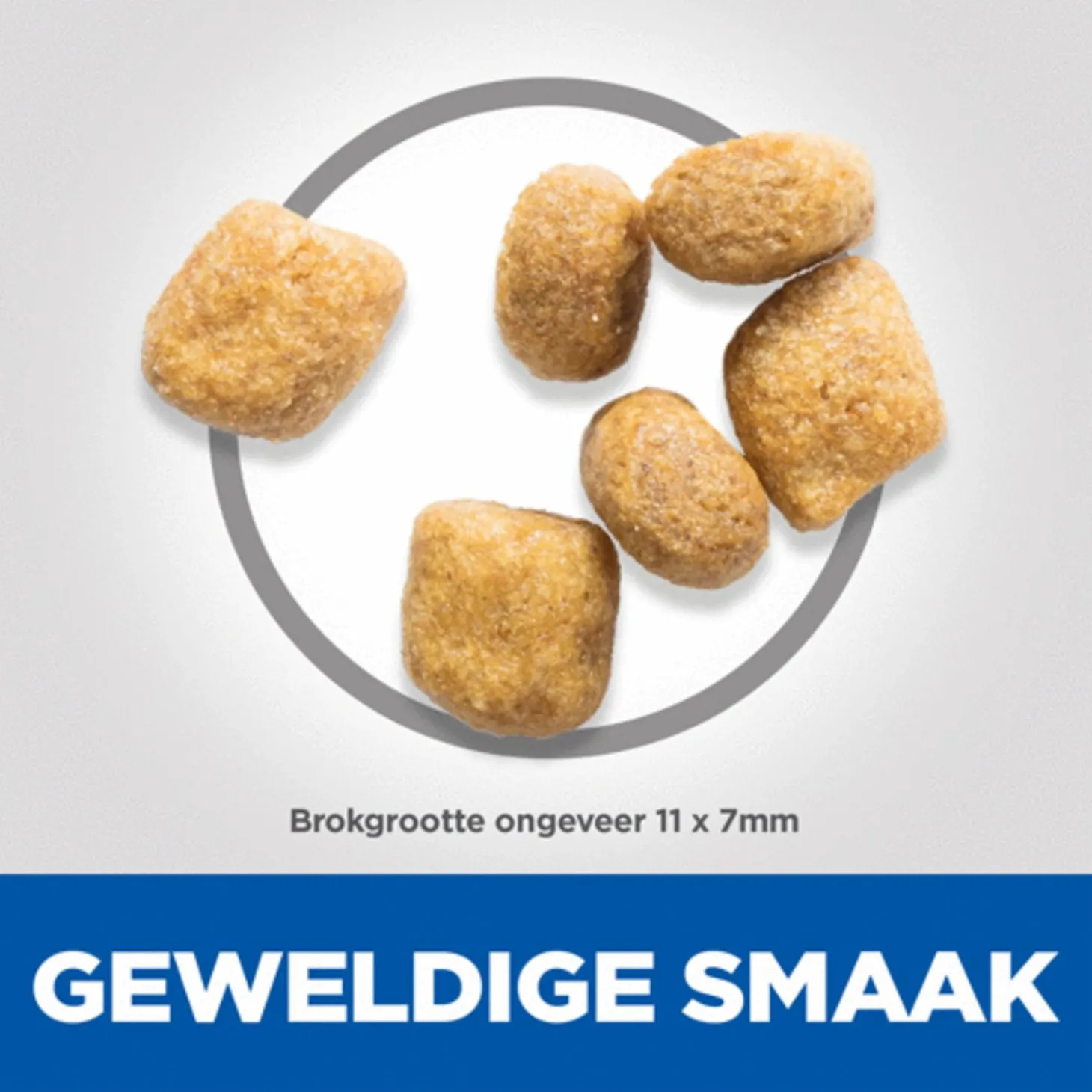 - Pas de hoeveelheid brokjes aan om het ideale gewicht te behouden, indien nodig in overleg met een dierenarts