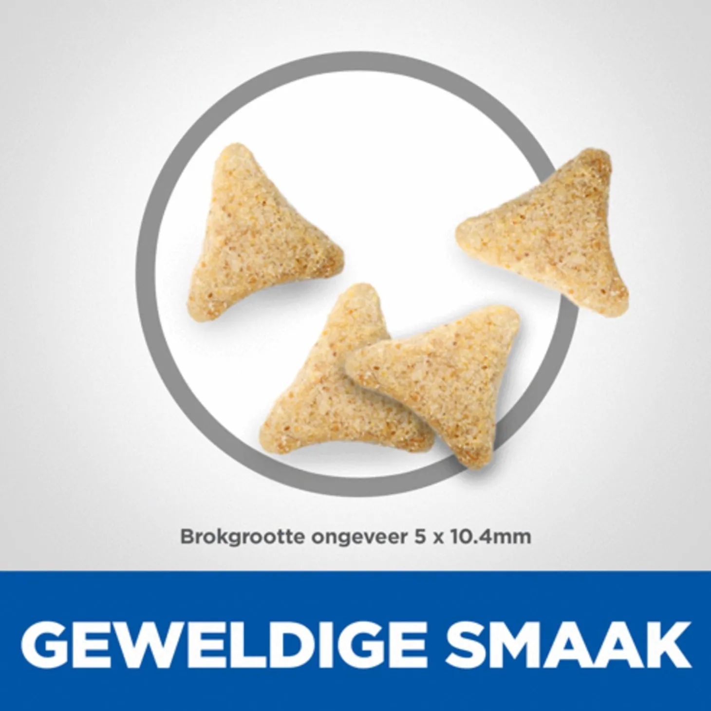 - Pas de hoeveelheid brokjes aan om het ideale gewicht te behouden, indien nodig in overleg met een dierenarts